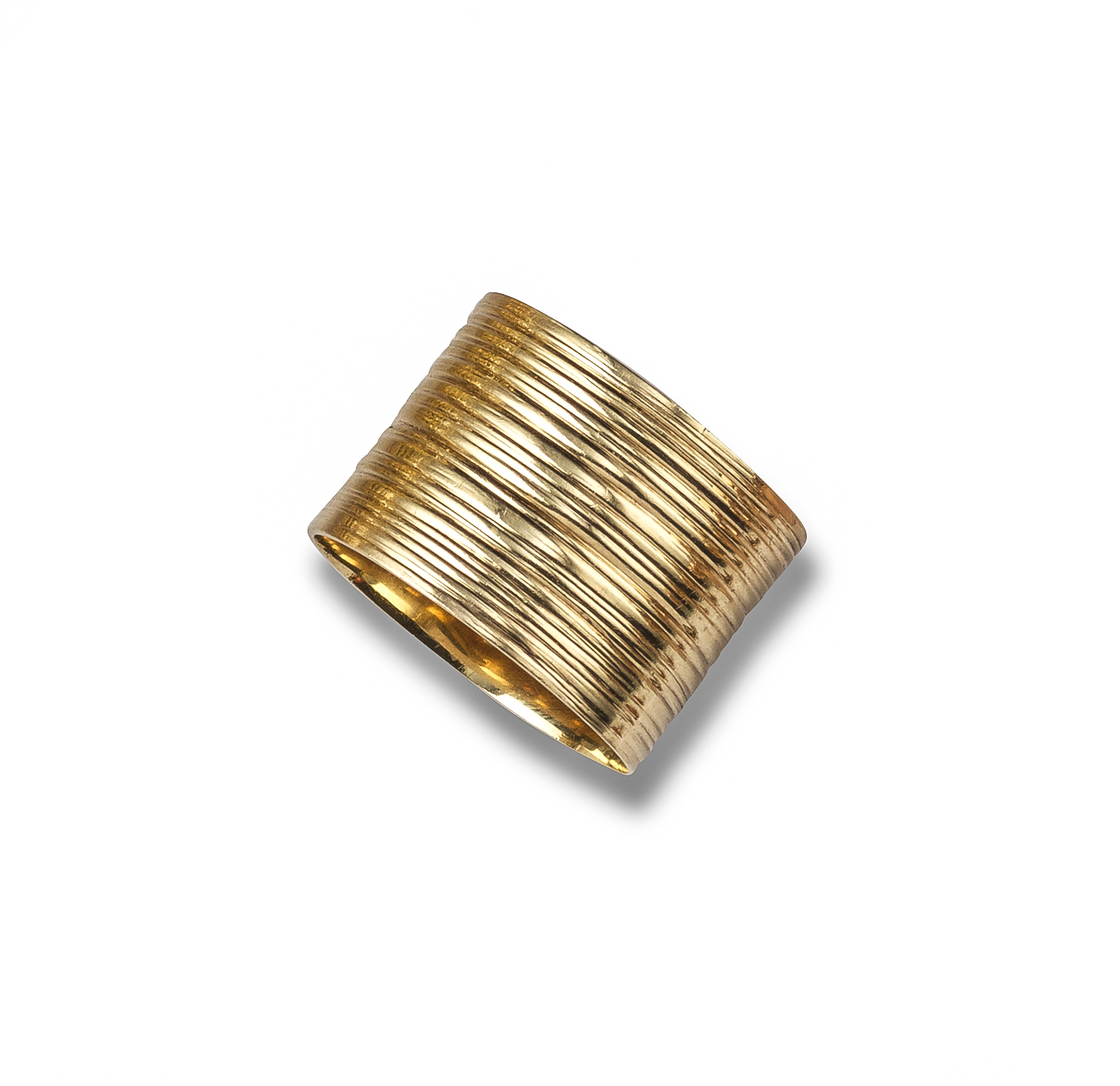 A gold stack ring by Charles de Temple, with banded decoration, signed C de T and with 9ct London hallmarks for 1963, size approximately M