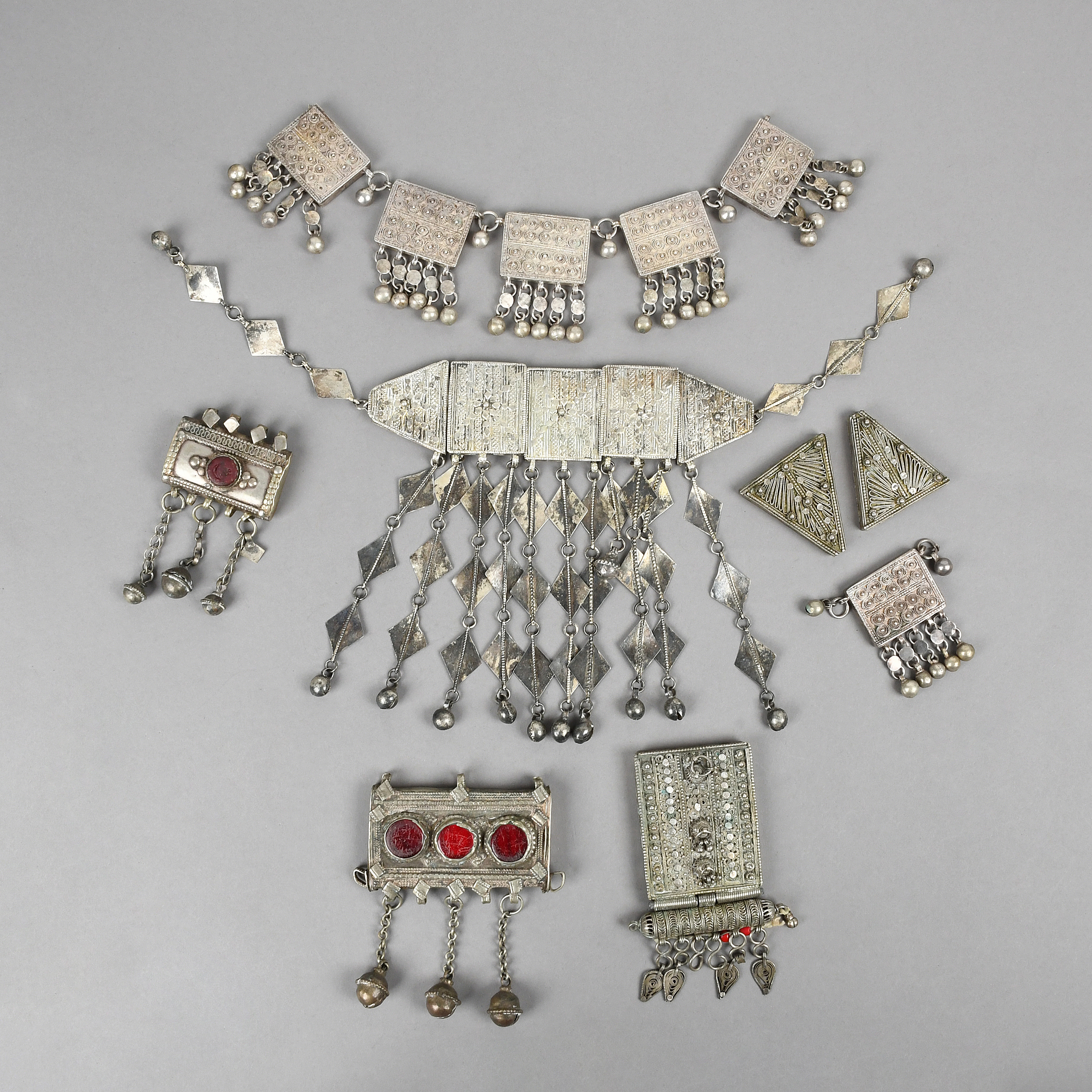 Three Bedouin hirz receptacles silver coloured metal with glass