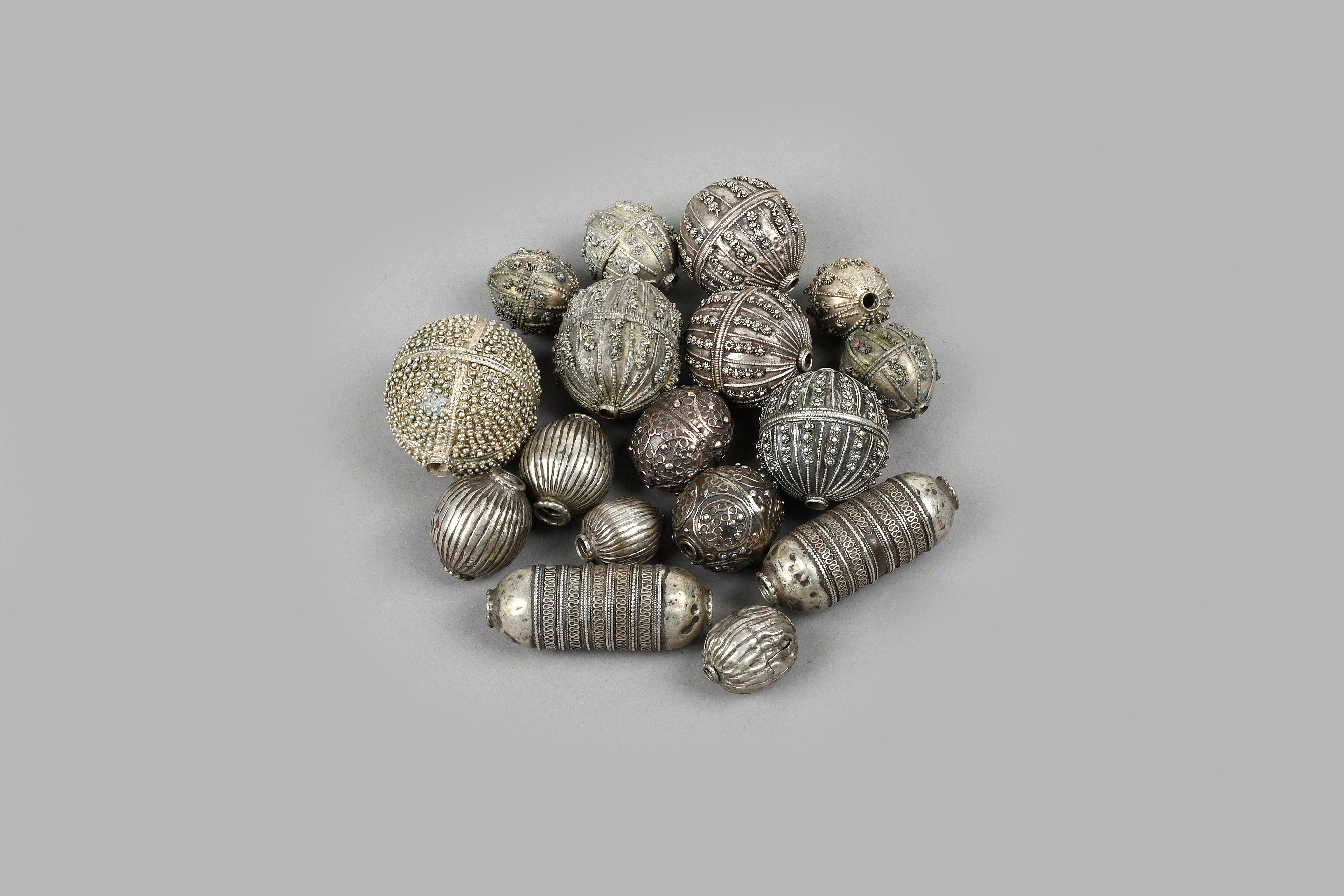 Four Yemen signed large beads silver coloured metal