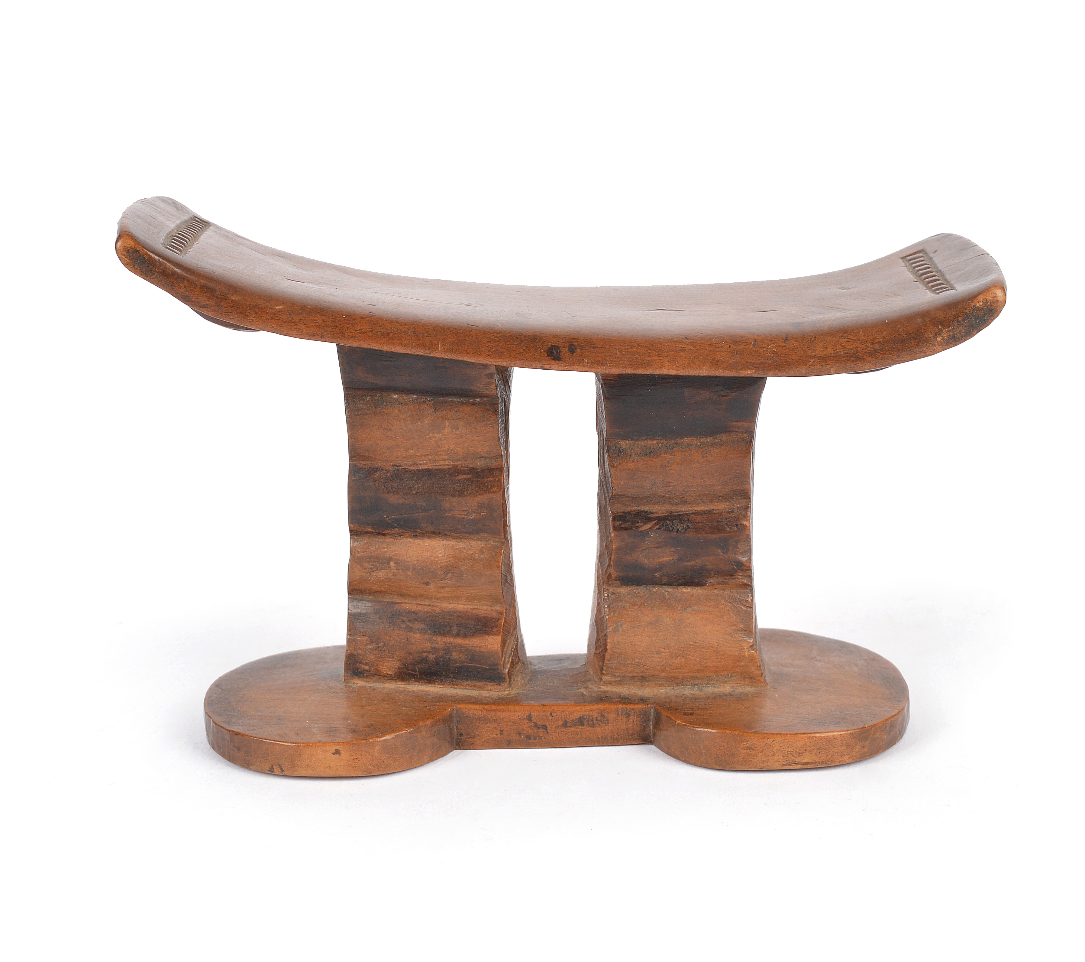 A Tsonga headrest South Africa with pokerwork decoration to the columns and lugs