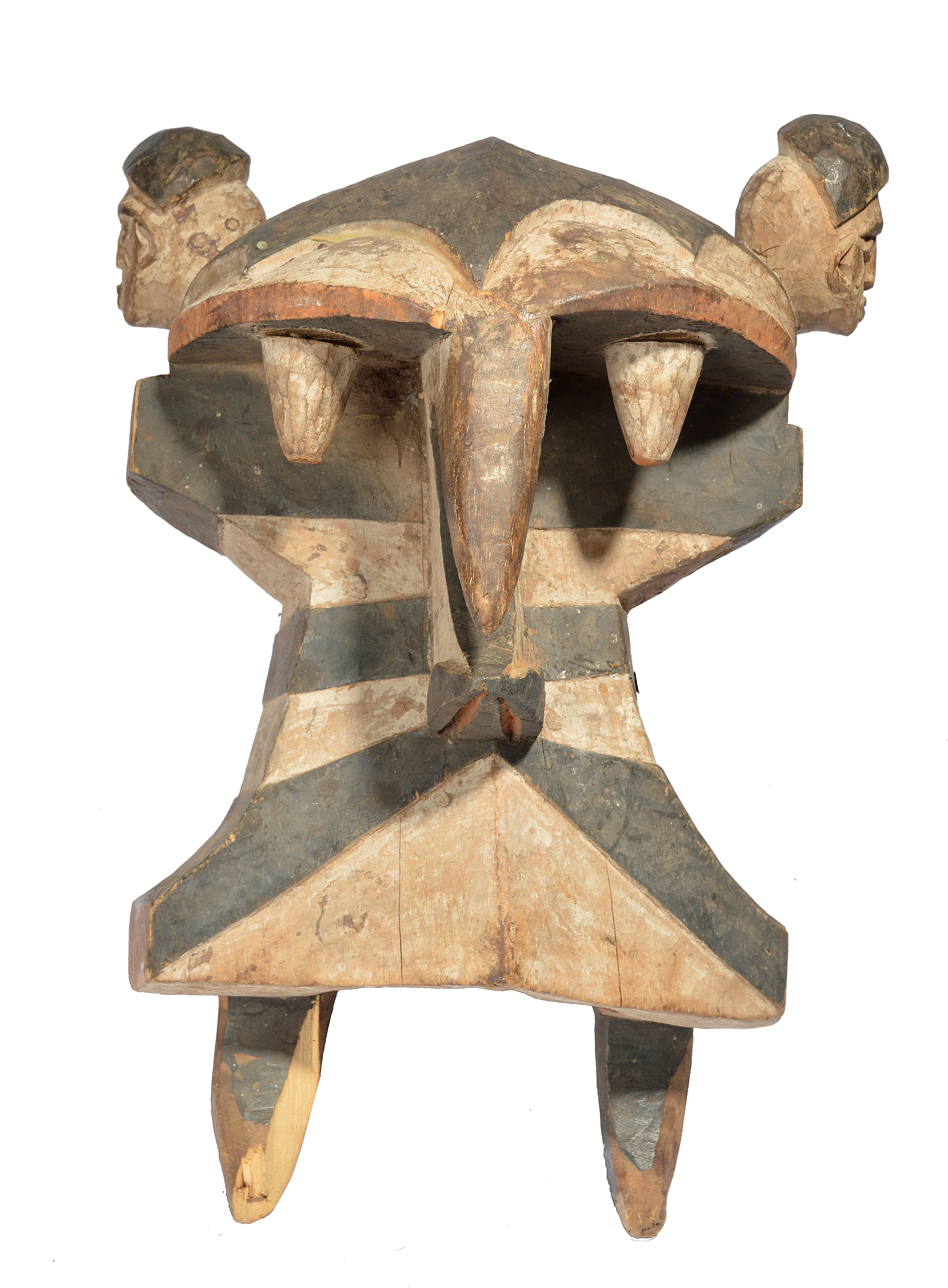 An Izzi elephant mask Nigeria with two carved heads and with black