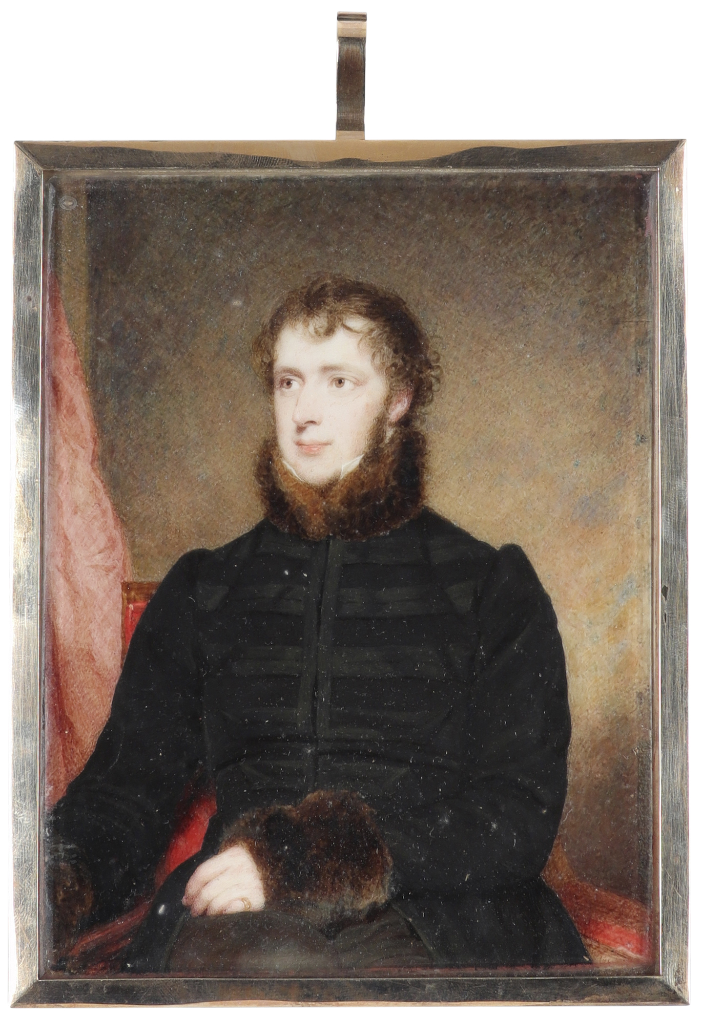 Portrait miniature of Sir John Powlett Orde, 2nd Baronet, in a black coat with fur collar and cuffs