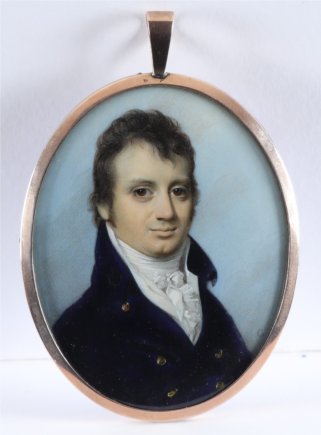 Portrait miniature of Matthew Vaughan, in a blue jacket and white stock