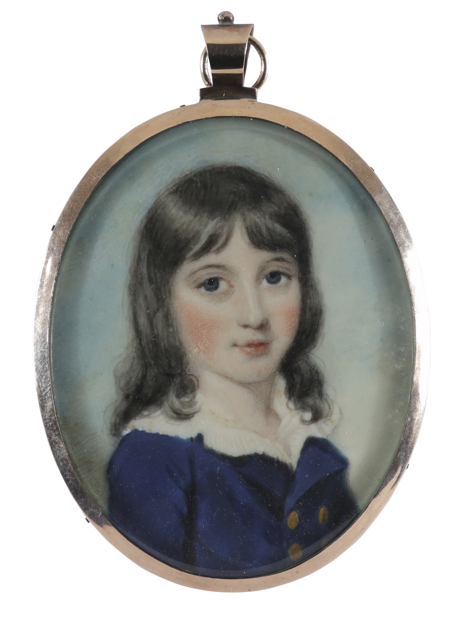 λEdward Burch (1730-1814) Portrait miniature of a boy in a blue jacket Oval