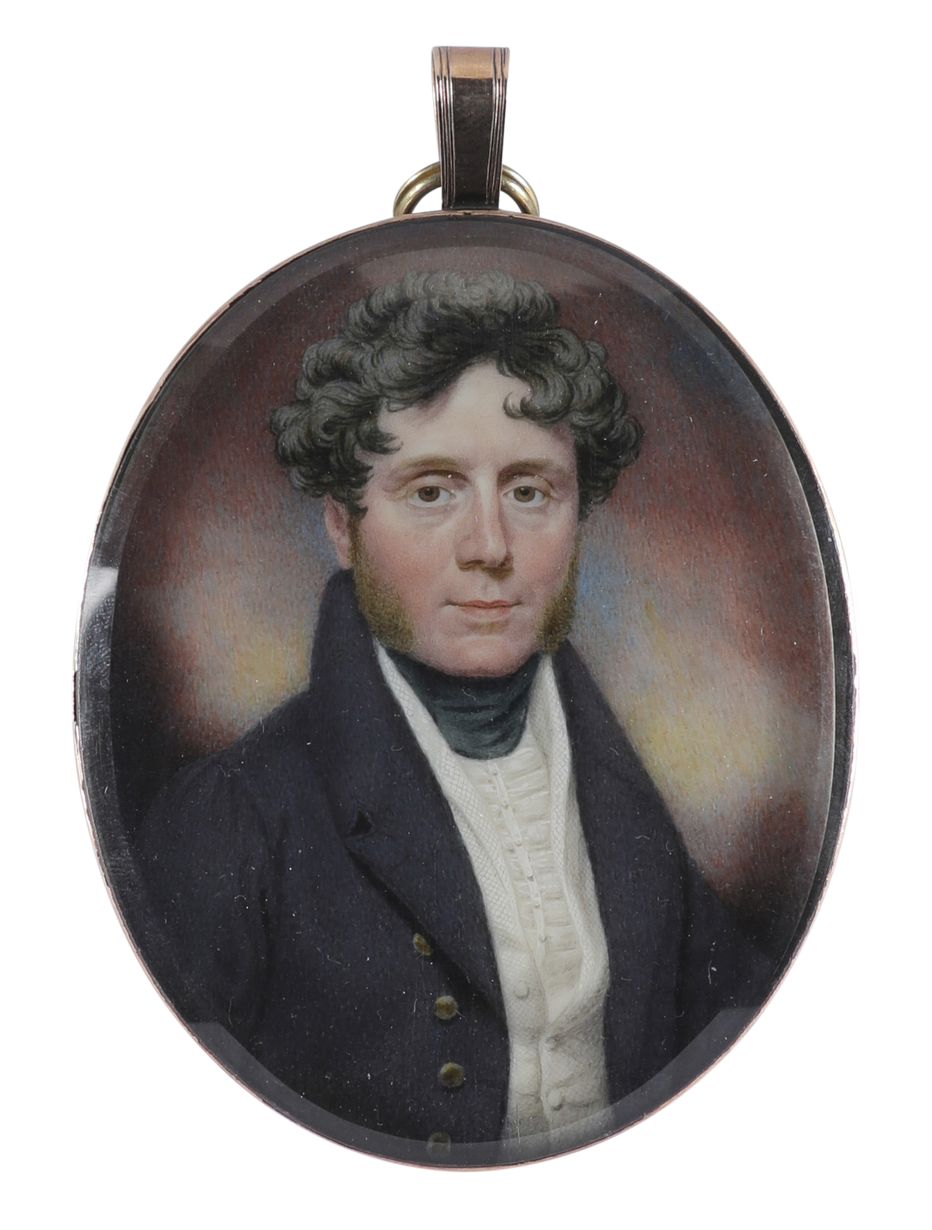 Portrait miniature of a gentleman in a grey coat and white waistcoat