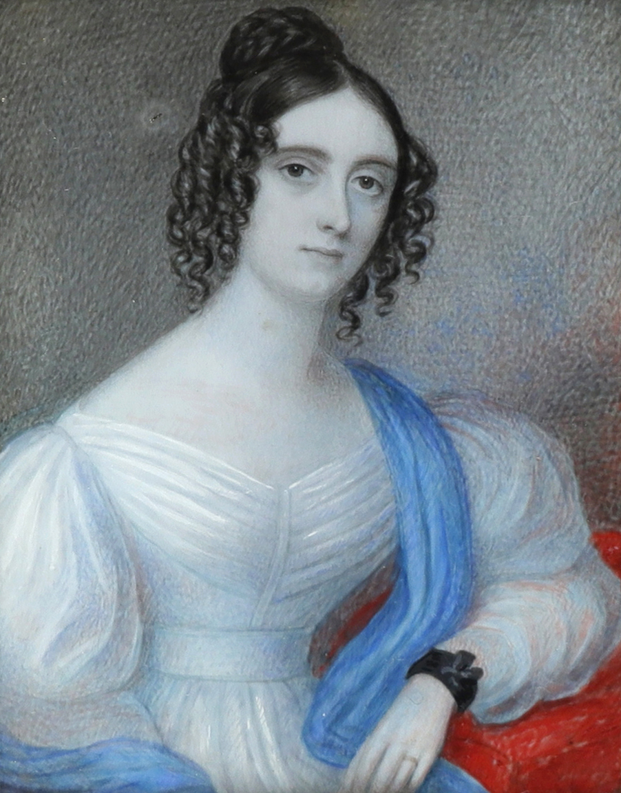Portrait miniature of a gentleman in a black coat; Portrait miniature of a lady in a white dress and blue shawl