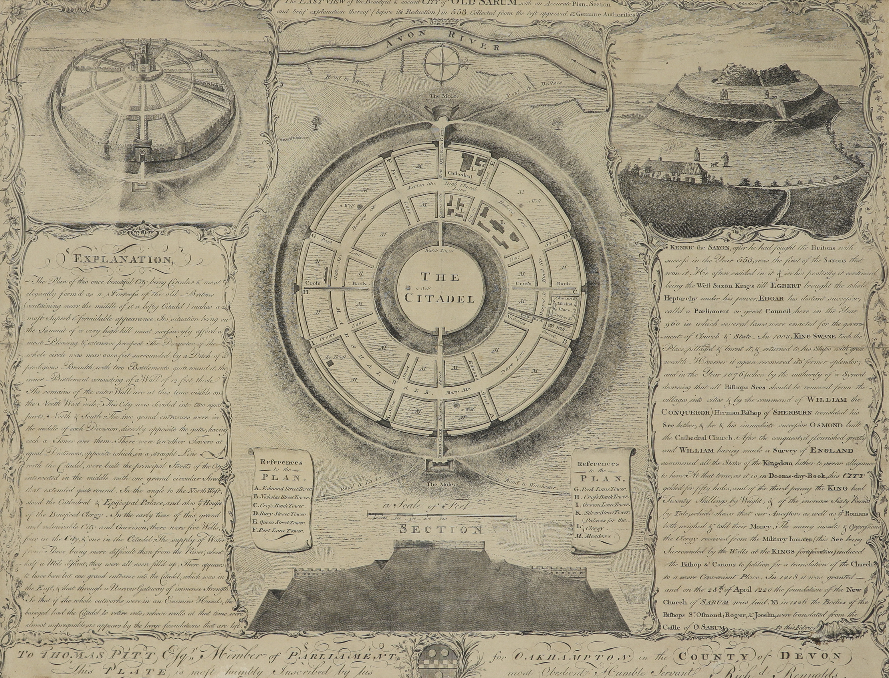 The East View of the Beautiful and Ancient City of Old Sarum with an Accurate Plan, Section and Brief Explanation thereof