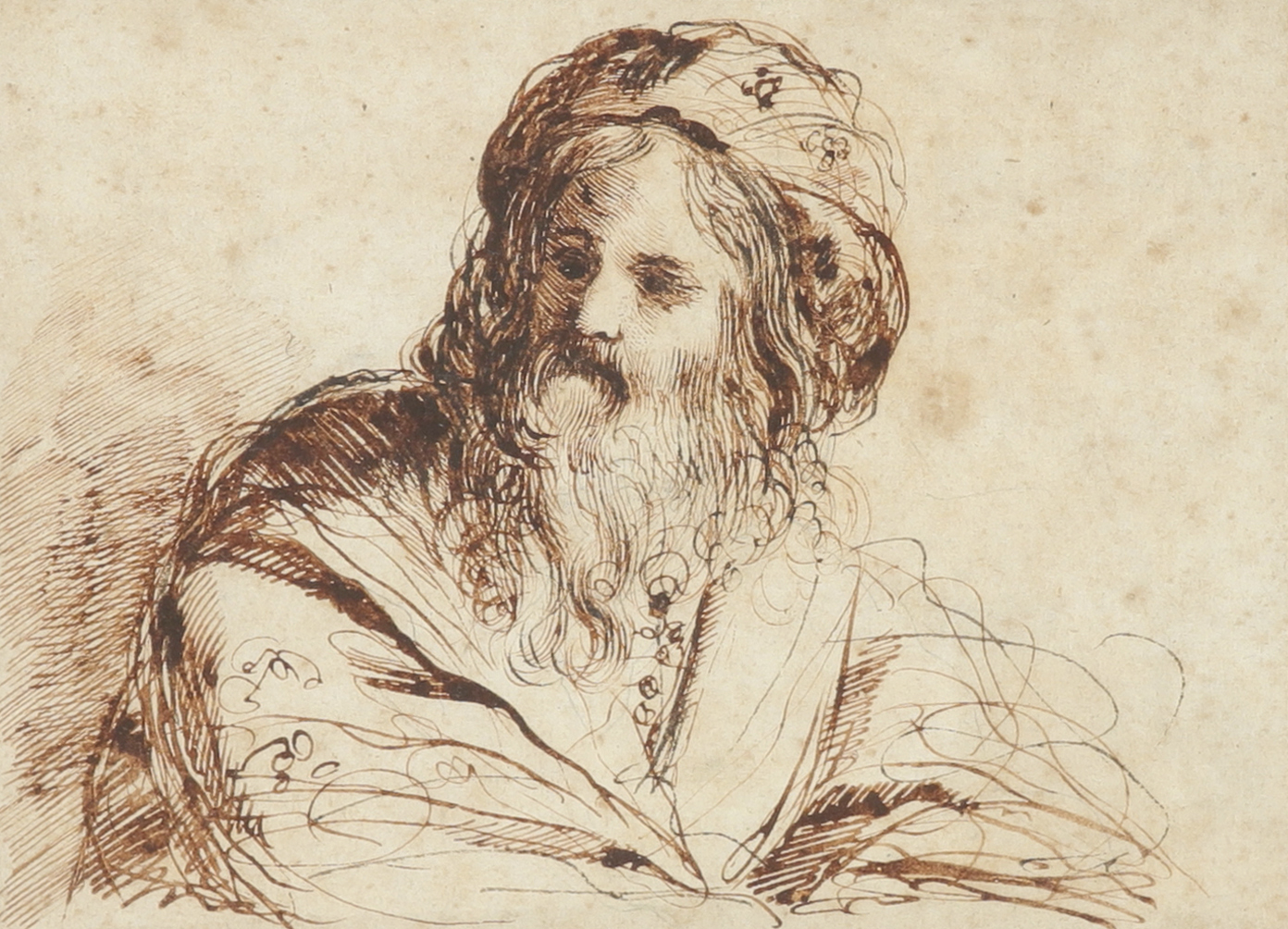 Italian School 17th Century Study of a bearded man in a turban Pen and brown ink 15 x 20.3cm; 6 x...
