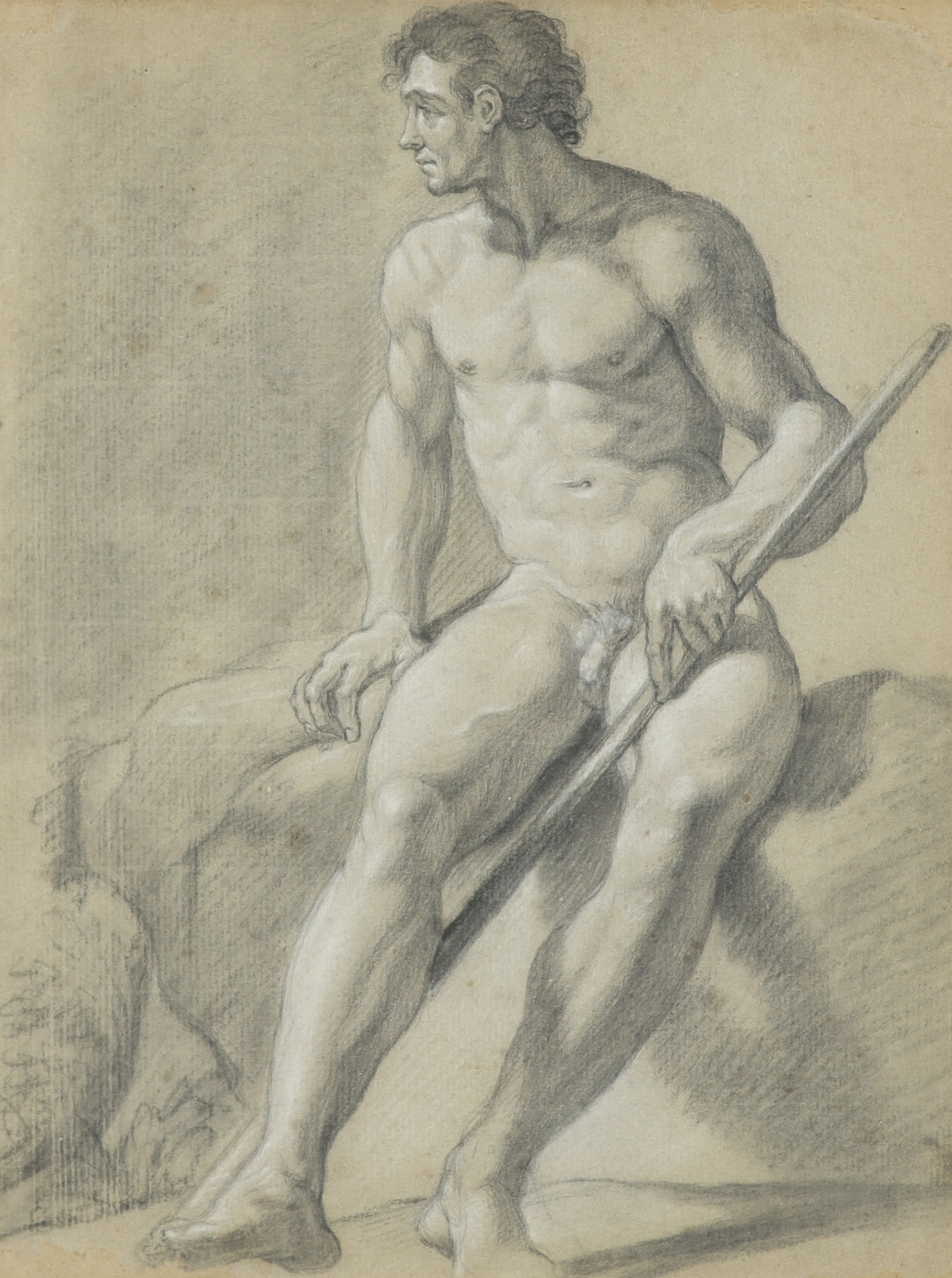 Attributed to Thomas Burgess (1721-1791) Study of a male nude Charcoal heightened with white 27.2...