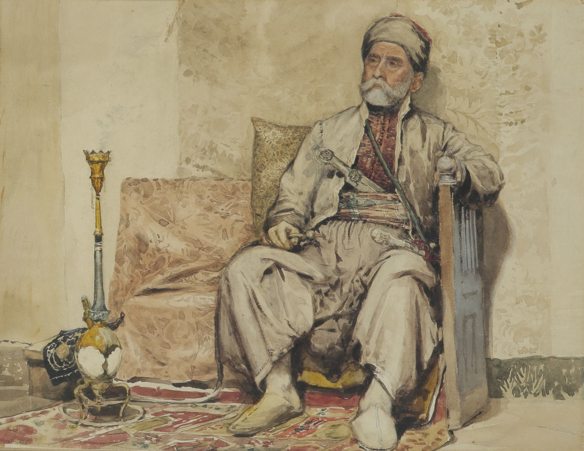 Circle of David Roberts Old man smoking a hookah Watercolour and pencil 25.3 x 32.6cm; 10 x 12¾in
