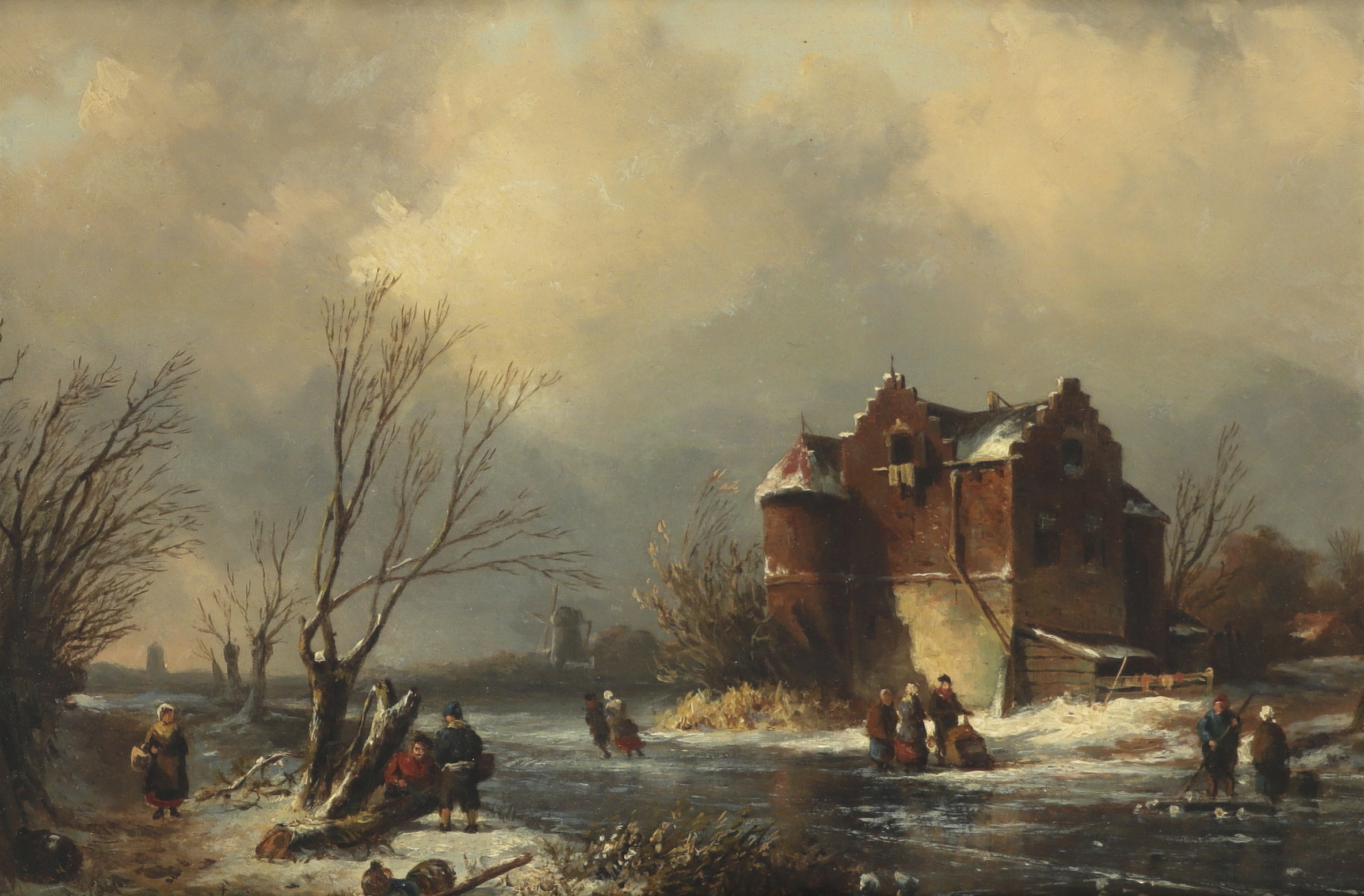 Charles Leickert (Belgian 1816-1907) Winter landscape with figures on bridge; Winter landscape...