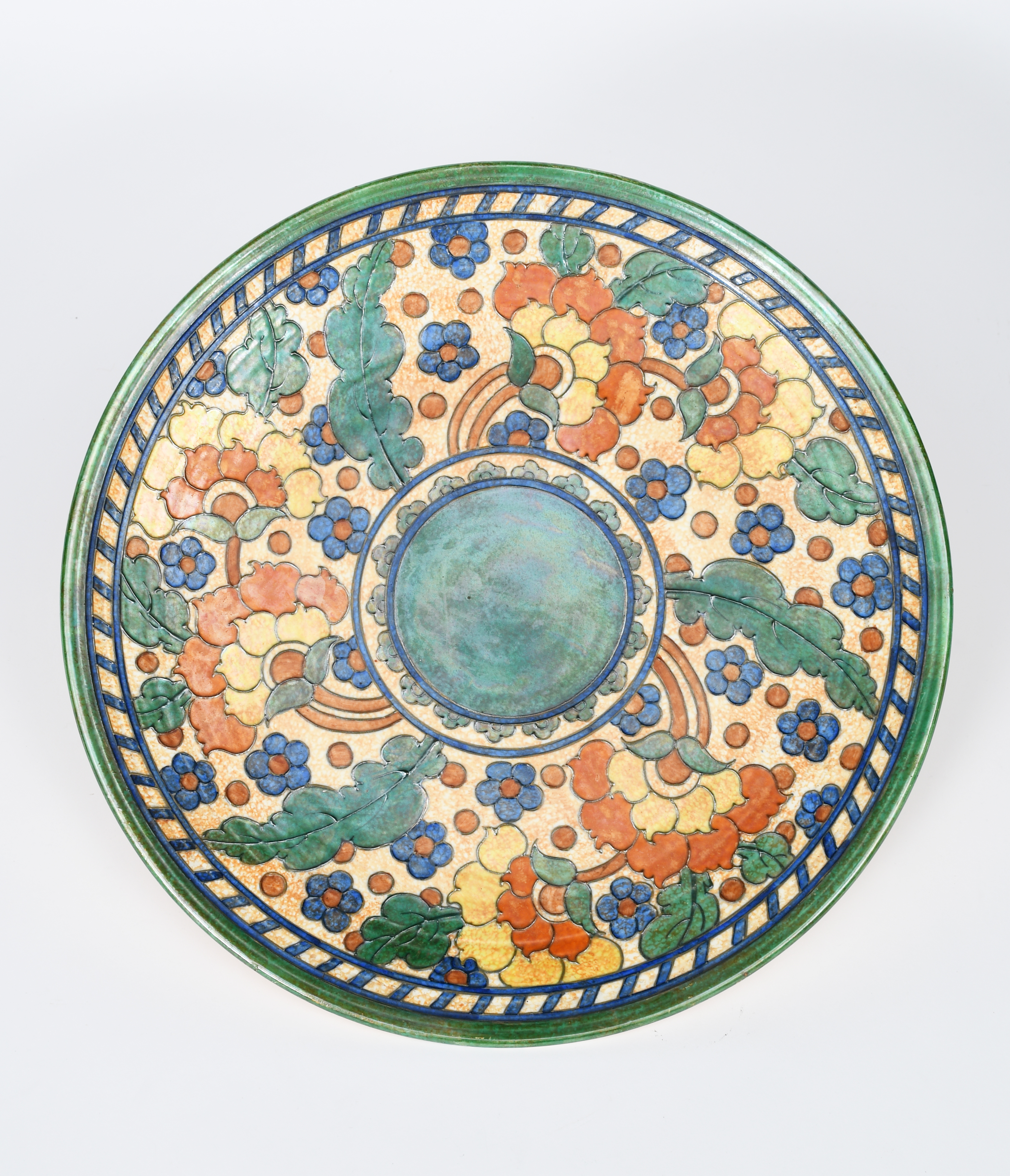 A large unusual Crown Ducal Byzantine variant charger designed by Charlotte Rhead