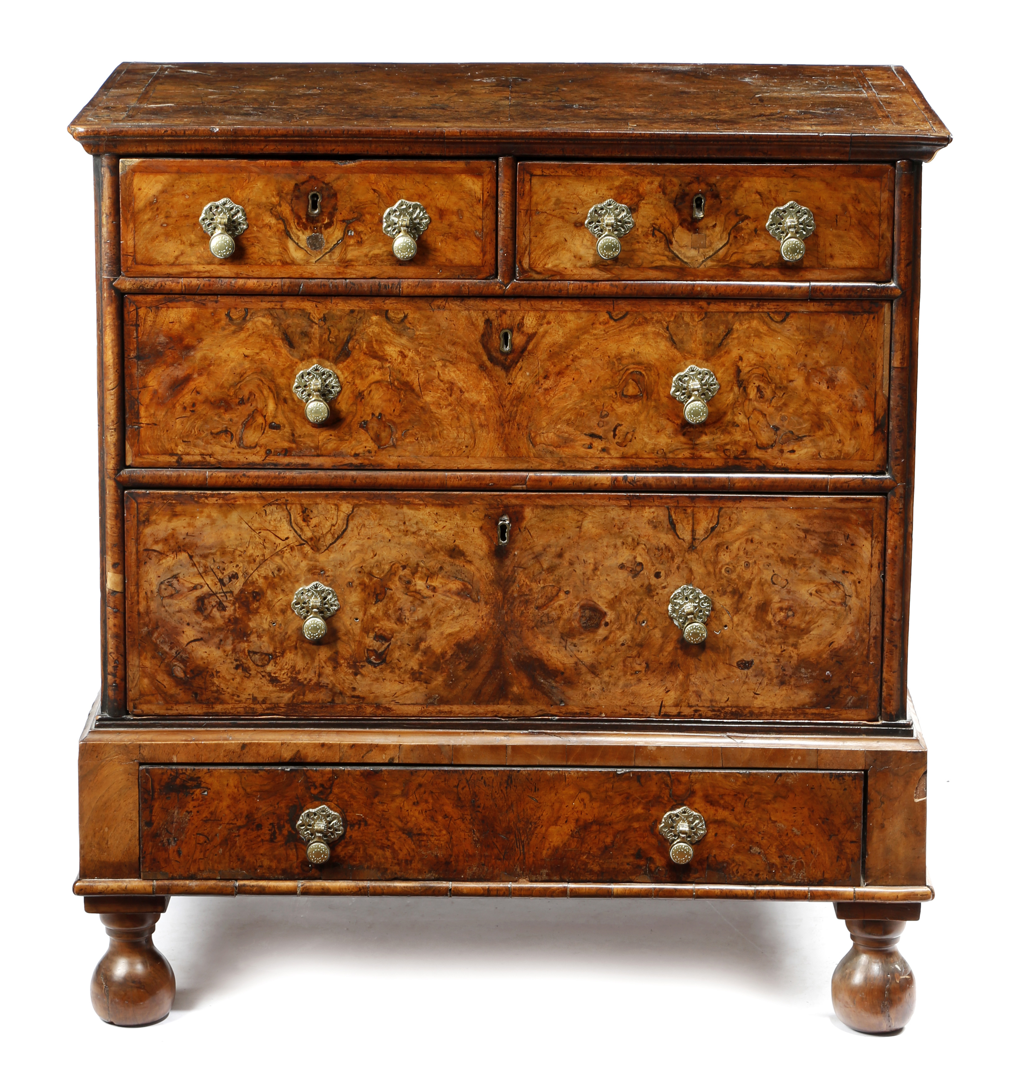 A QUEEN ANNE WALNUT CHEST ON STAND