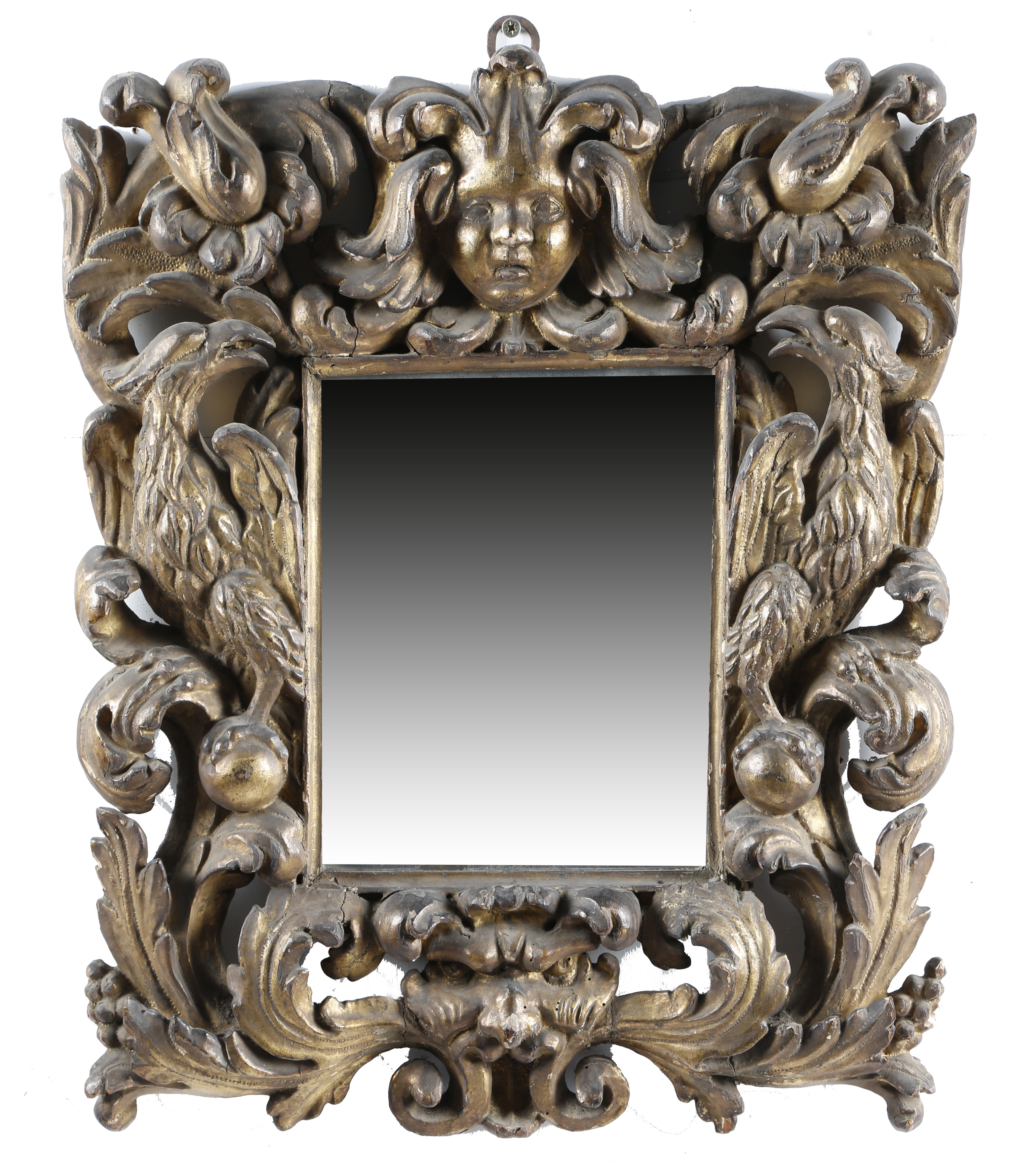 A CARVED GILTWOOD WALL MIRROR LATE 17TH / EARLY 18TH CENTURY the later rectangular plate within a...
