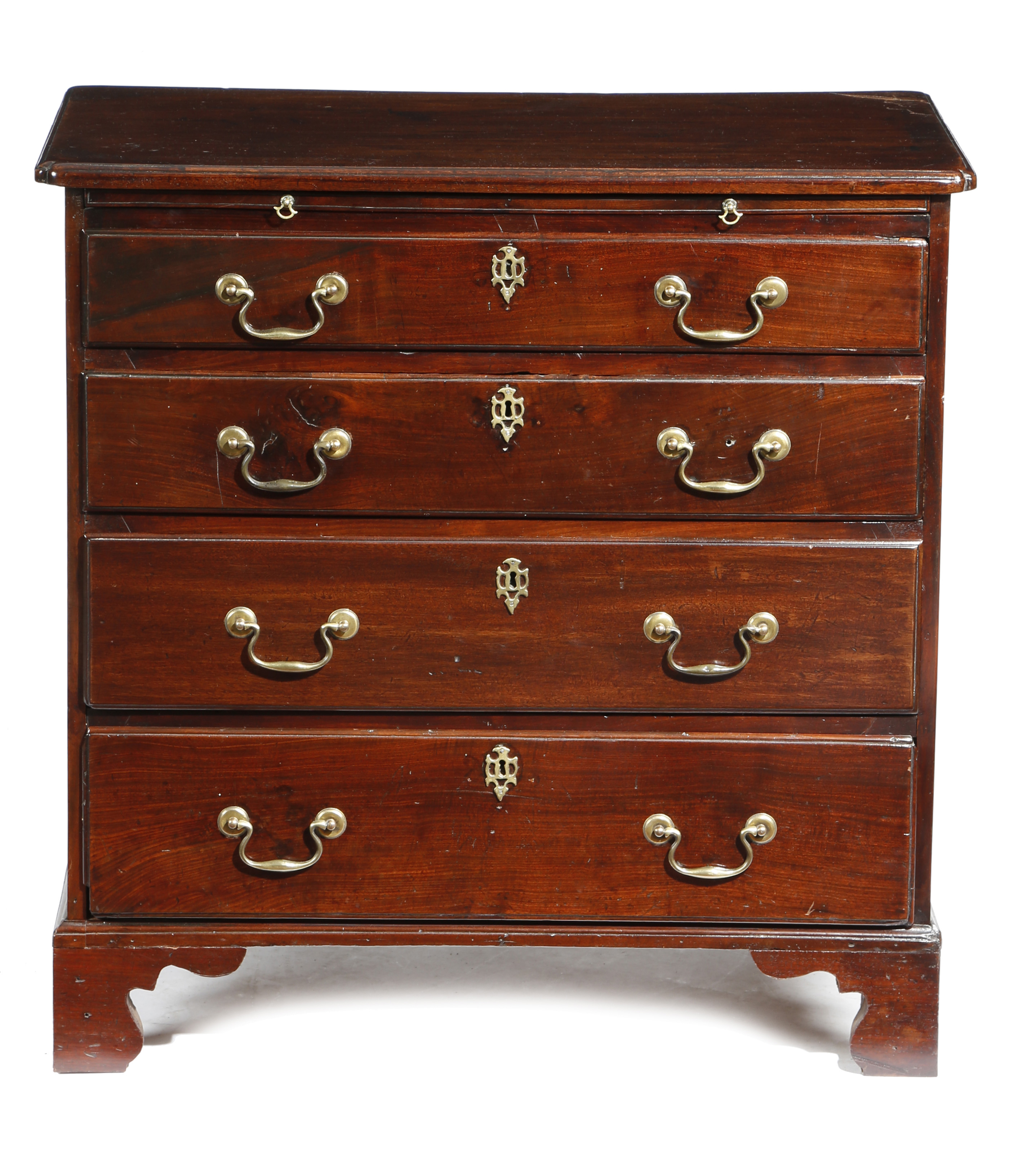 A GEORGE II MAHOGANY CHEST MID-18TH CENTURY the top with a moulded edge and re-entrant front...