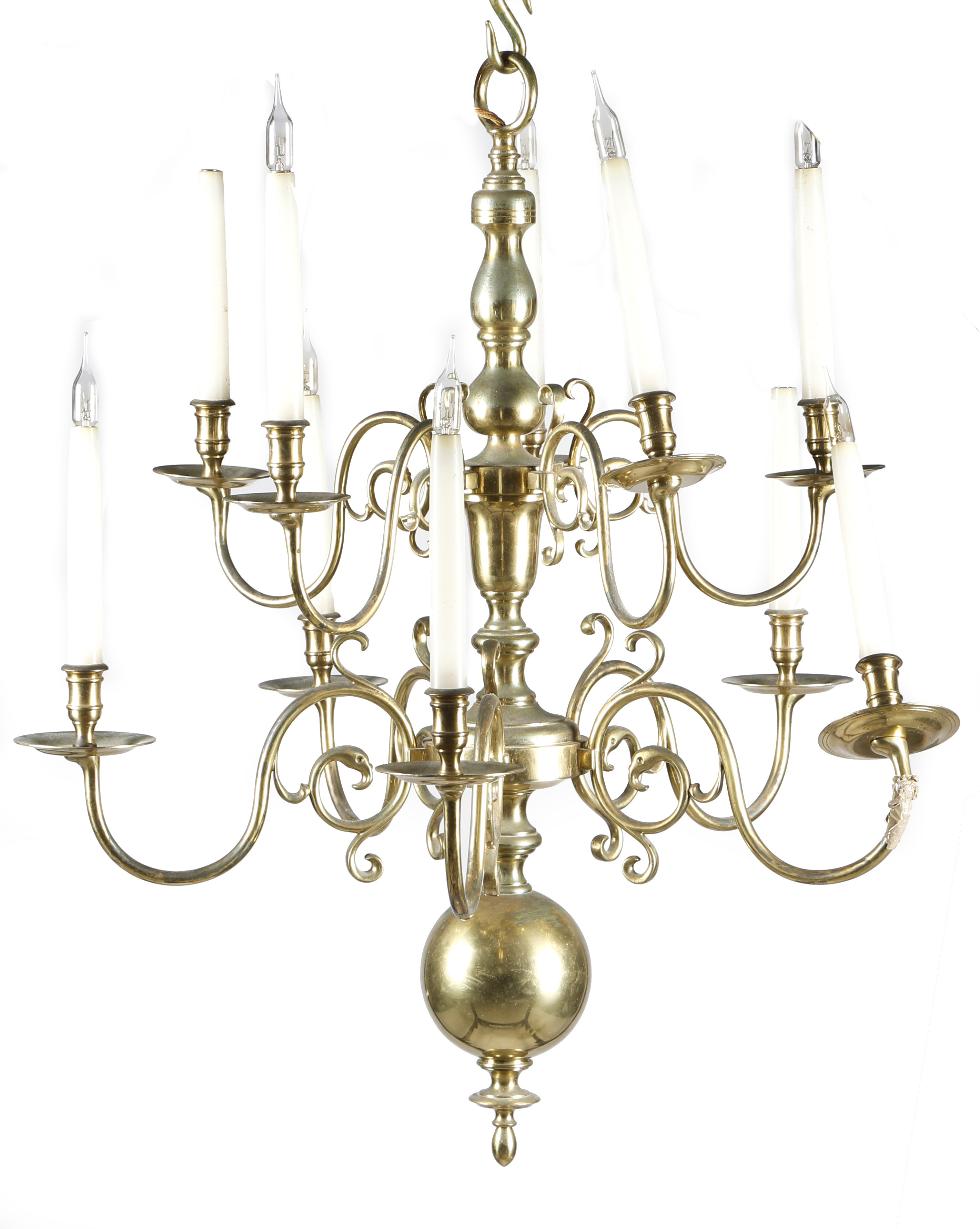 A DUTCH BRASS TEN-LIGHT CHANDELIER IN BAROQUE STYLE