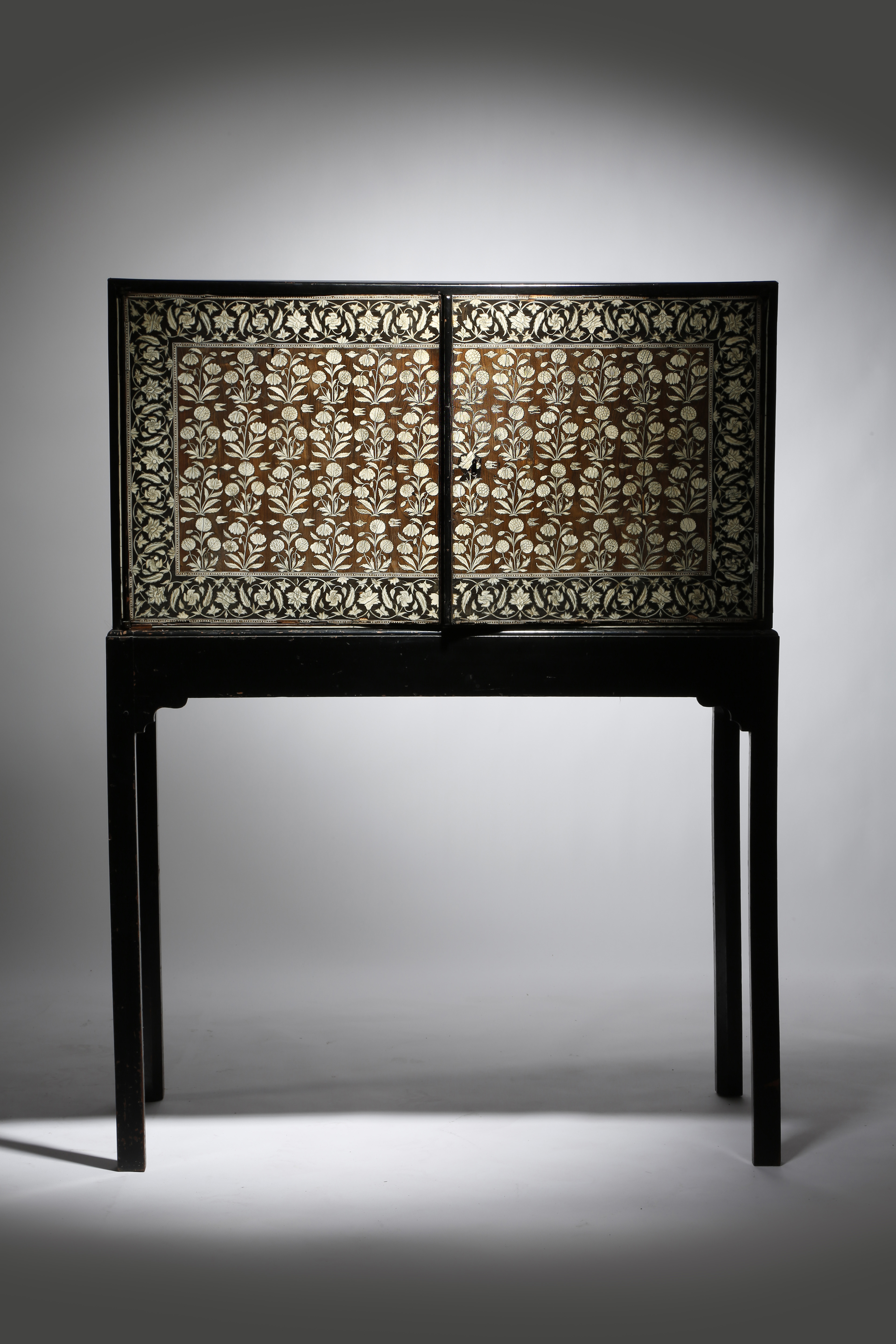 λ A MUGHAL INDIAN EBONY AND IVORY CABINET GUJARAT OR SINDH