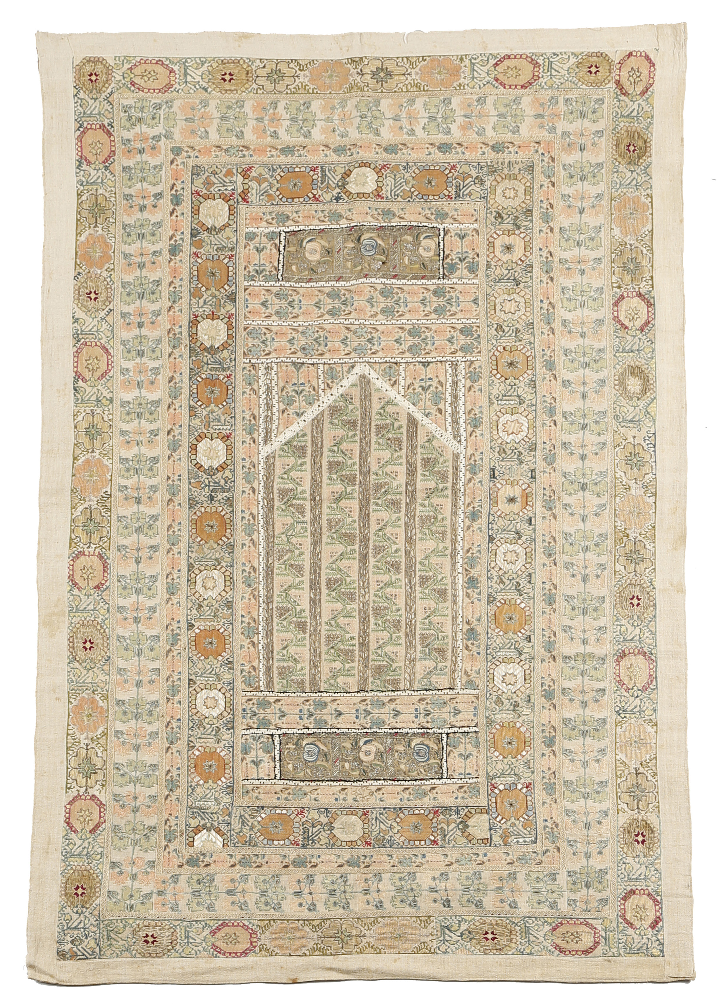 A COMPOSITE PRAYER HANGING 18TH CENTURY ELEMENTS made from various Greek embroidered strips