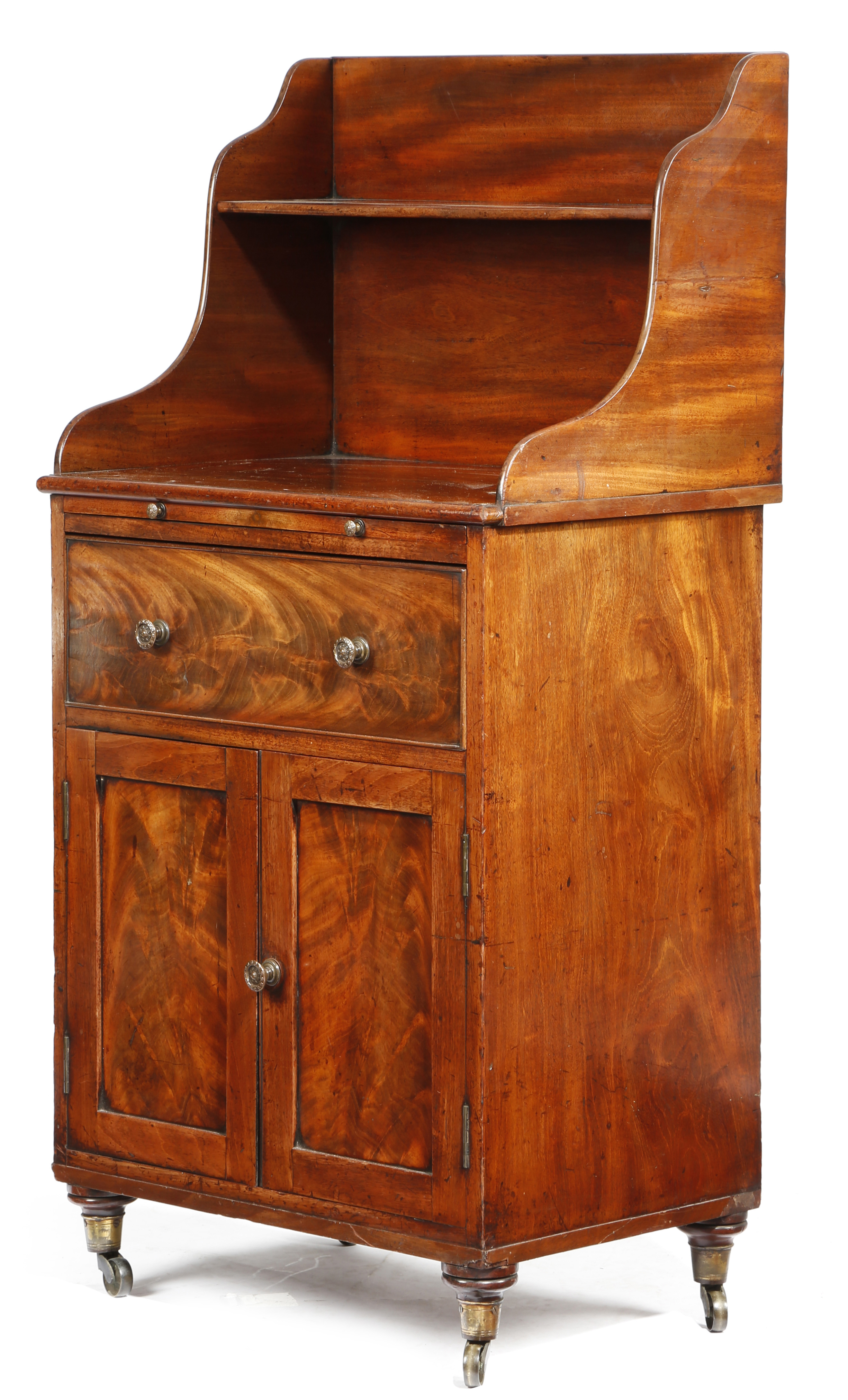 A GEORGE IV MAHOGANY SIDE CABINET EARLY 19TH CENTURY with flame figuring