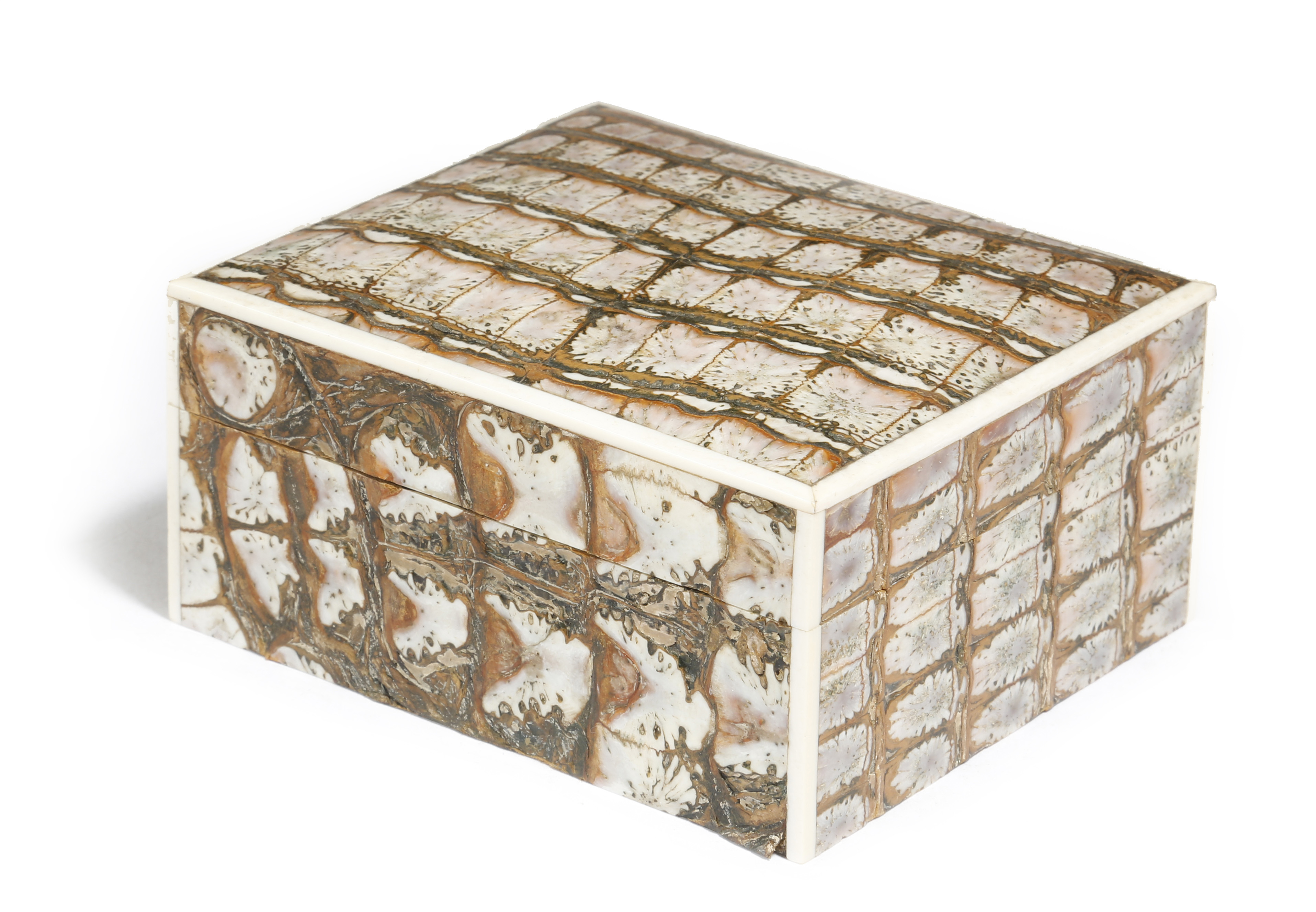 λ AN IGUANA SKIN COVERED CIGARETTE BOX EARLY 20TH CENTURY with ivory edging