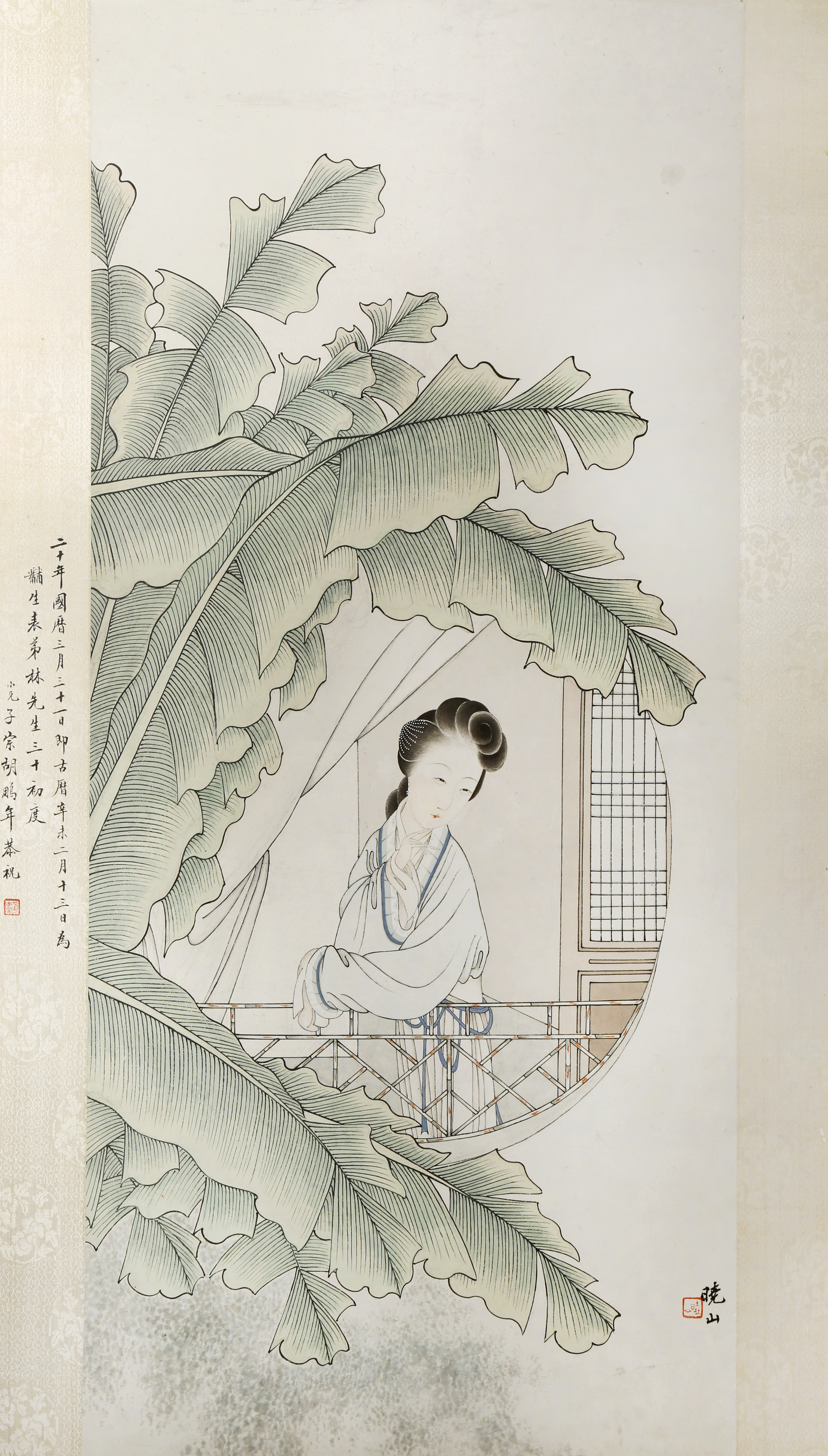 XIAO SHAN (REPUBLIC PERIOD) BEAUTY BENEATH BANANA LEAVES A Chinese painting