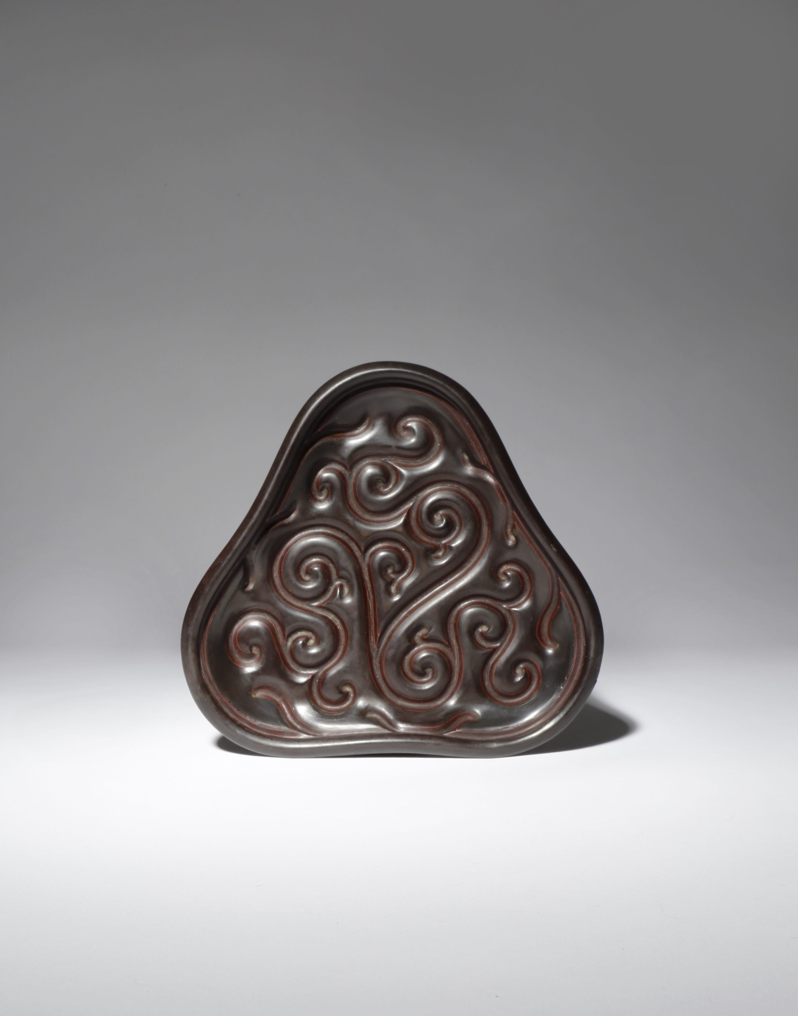 A RARE CHINESE TIXI LACQUER TREFOIL DISH