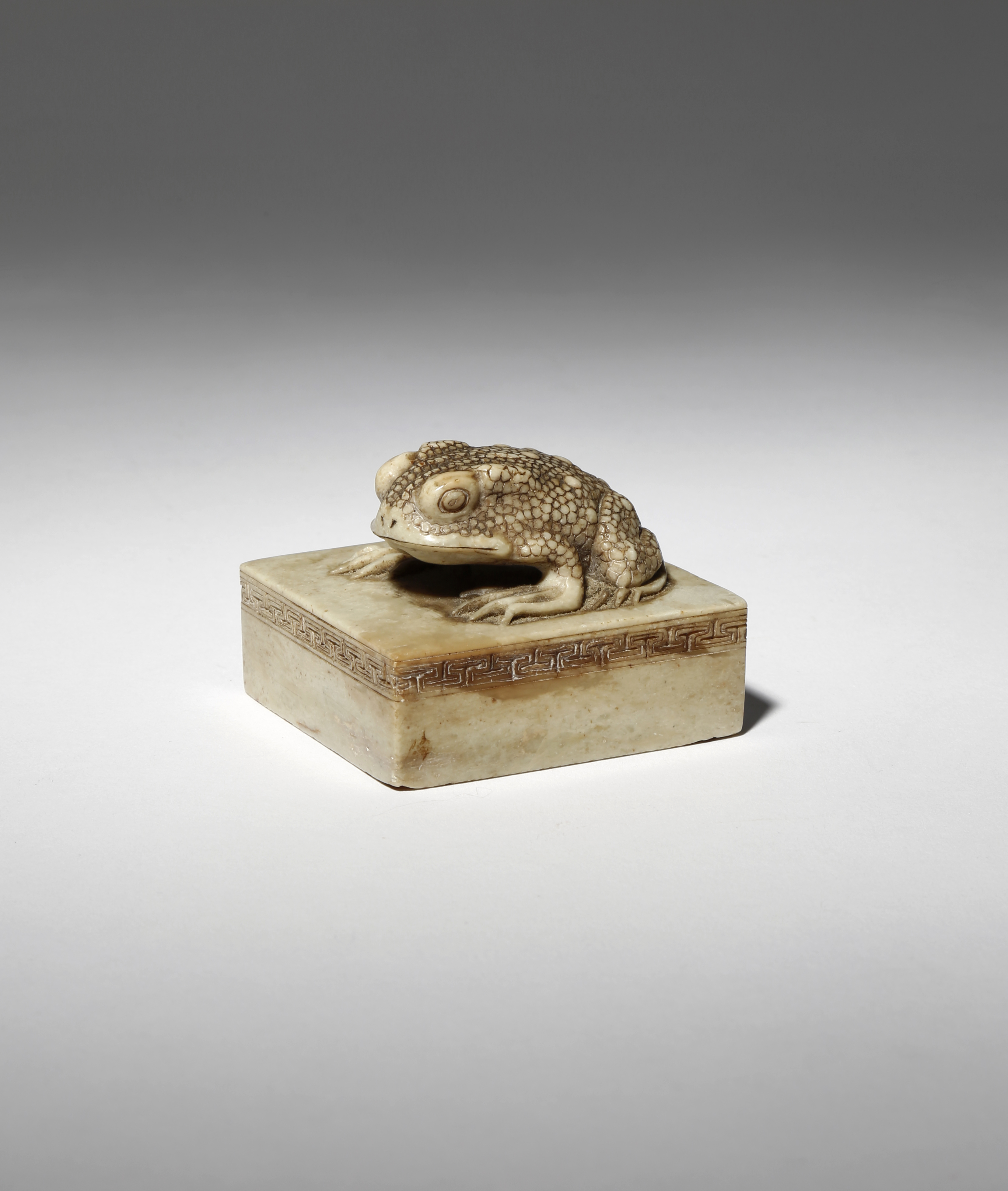A RARE CHINESE SOAPSTONE 'TOAD' SEAL 18TH/19TH CENTURY Carved as a toad sitting upon a square base