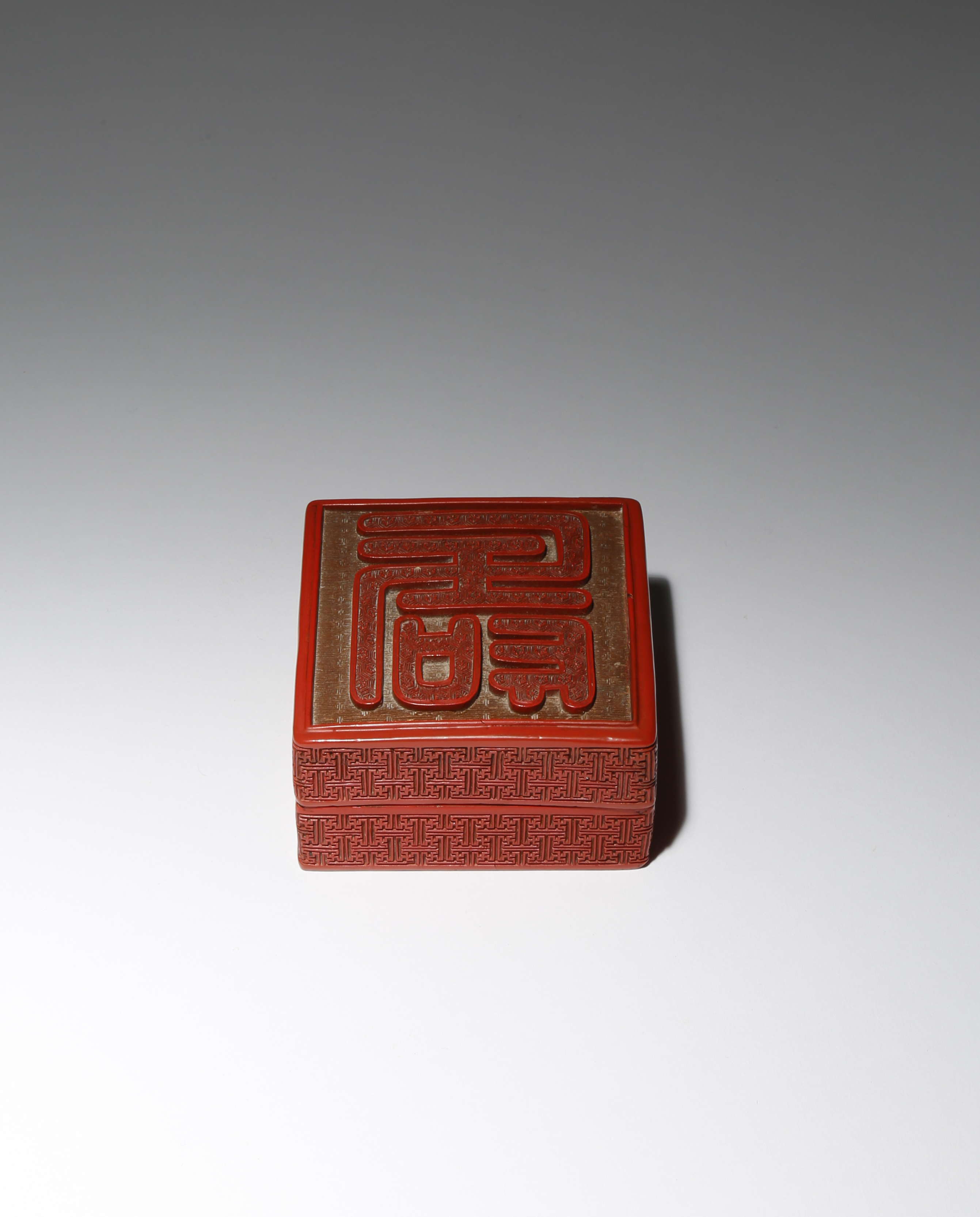 A CHINESE CINNABAR LACQUER SQUARE 'LONGEVITY' BOX AND COVER