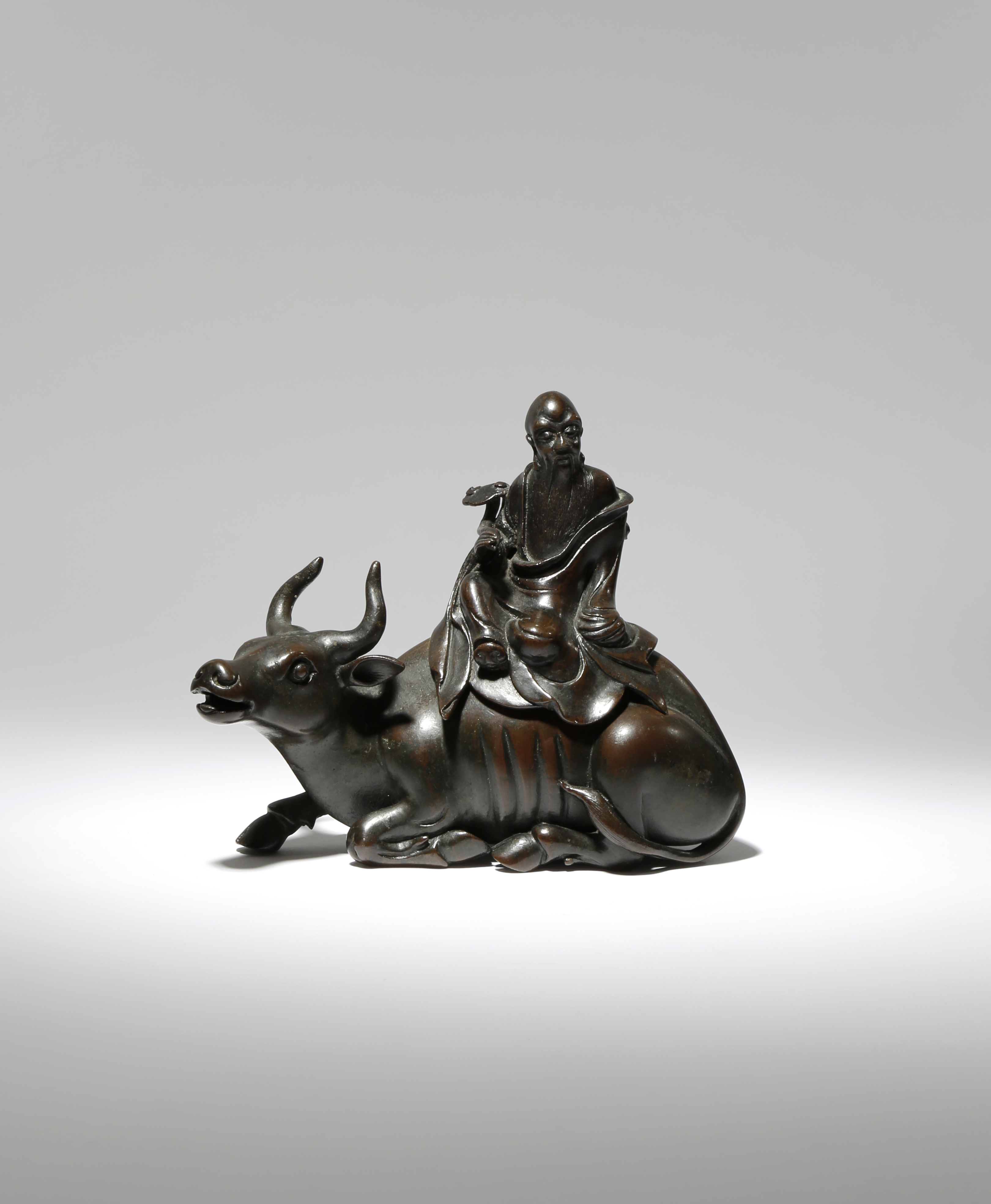 A CHINESE BRONZE 'LAOZI AND BUFFALO' INCENSE BURNER AND COVER 17TH CENTURY The cover formed as...