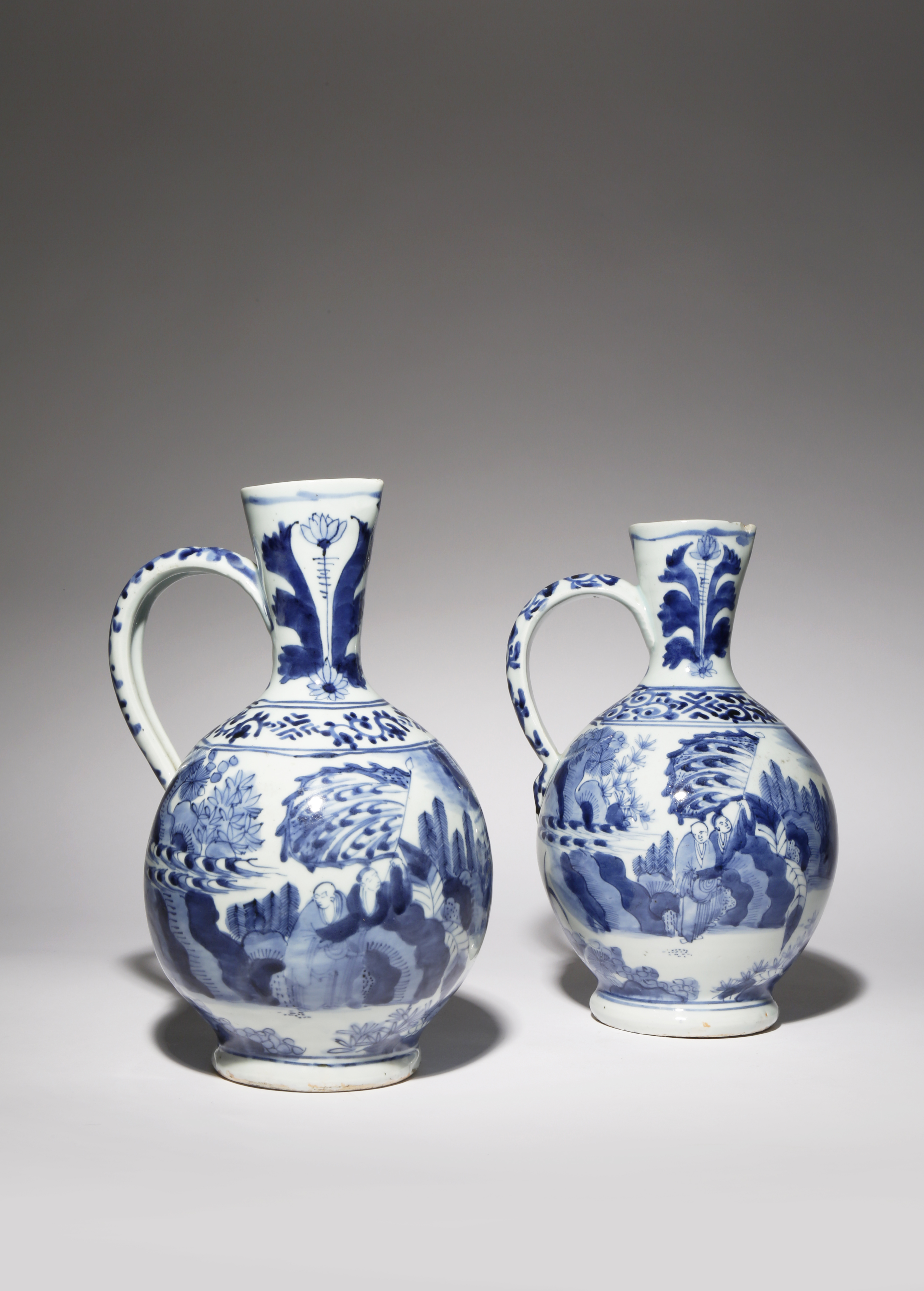 TWO JAPANESE ARITA BLUE AND WHITE EWERS EDO PERIOD