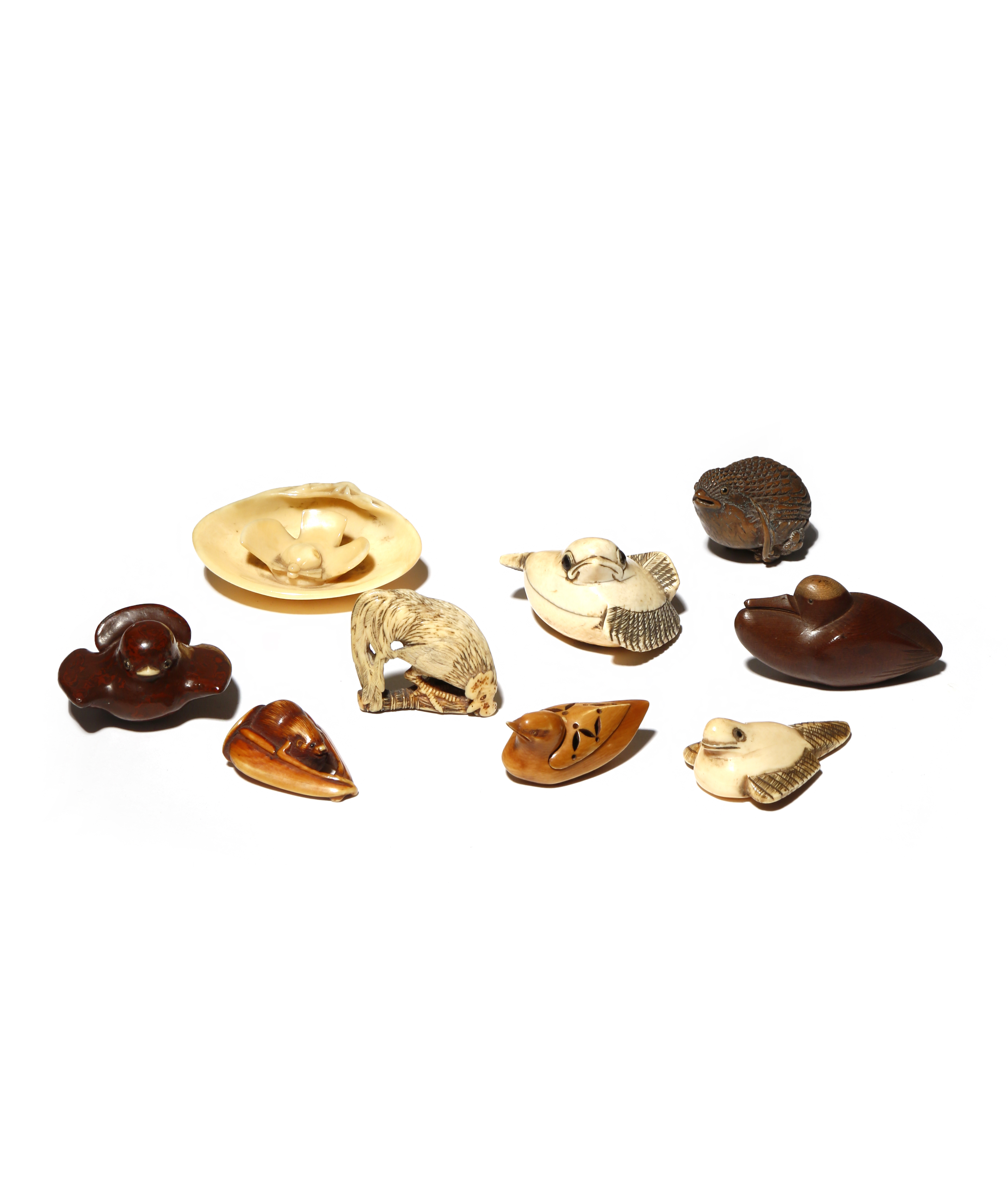 λ EIGHT JAPANESE NETSUKE OF BIRDS