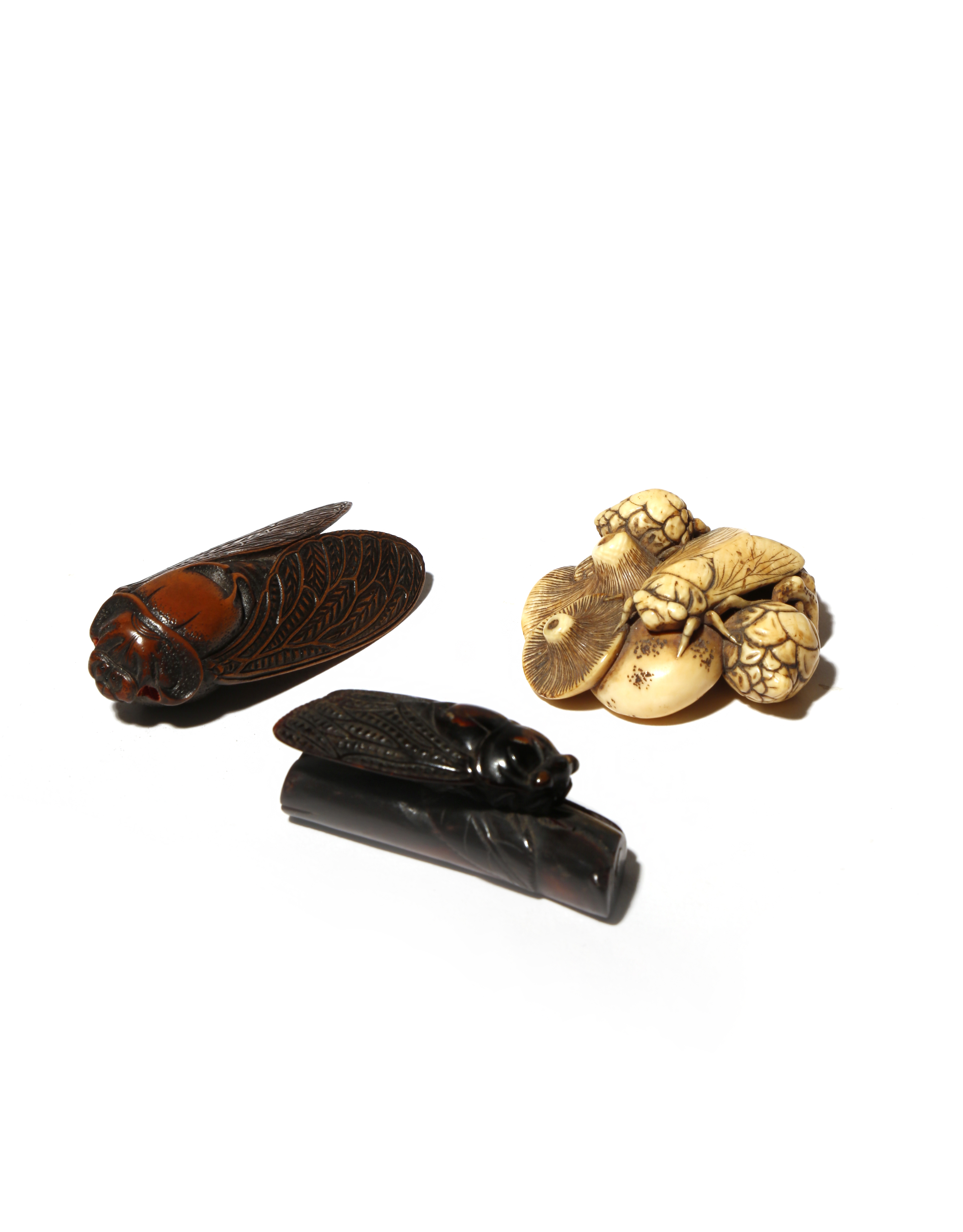 λ THREE JAPANESE NETSUKE OF CICADAS