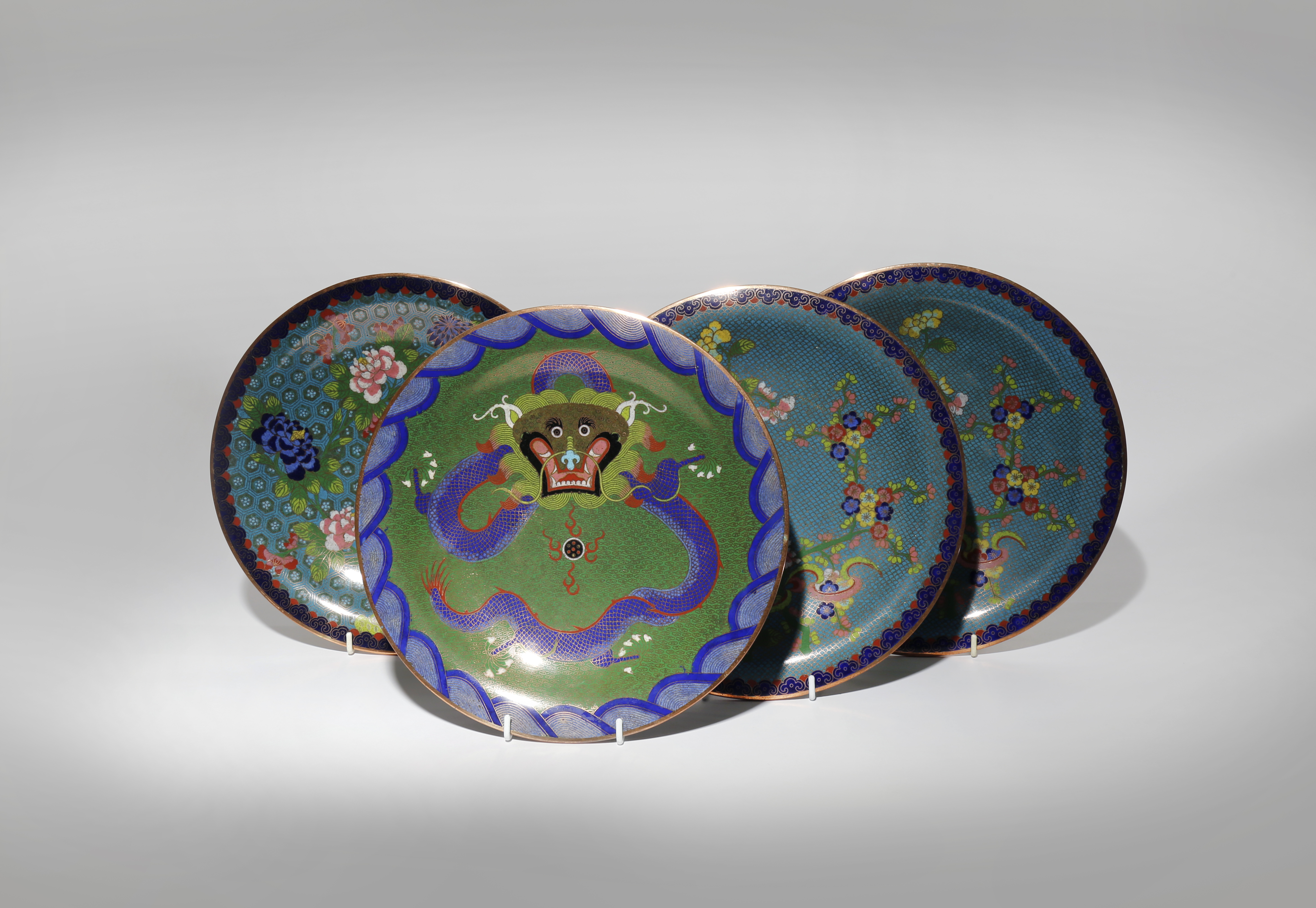 FOUR CHINESE CLOISONNE PLATES C.1900 Two of the plates a pair