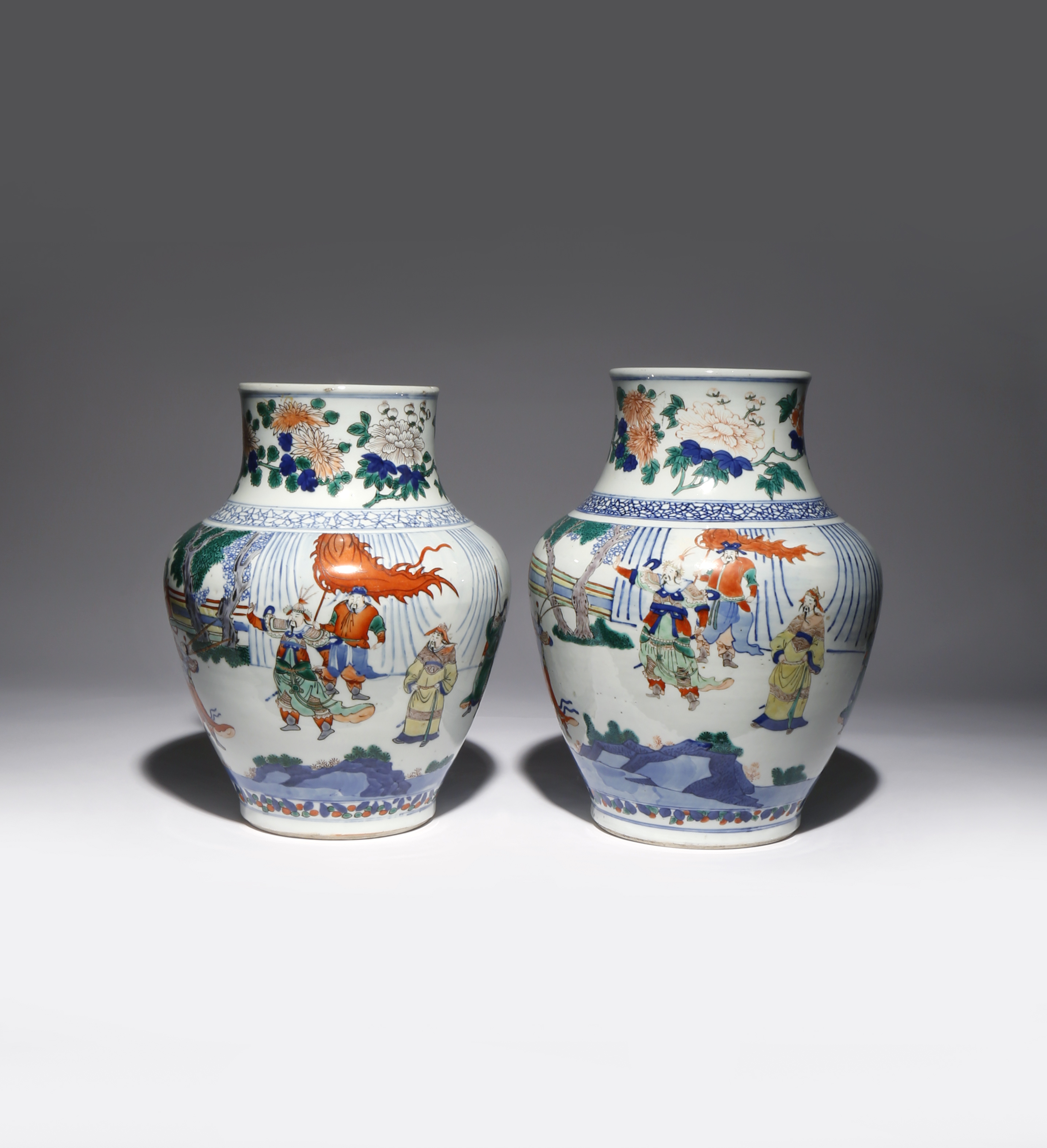A NEAR PAIR OF CHINESE WUCAI VASES