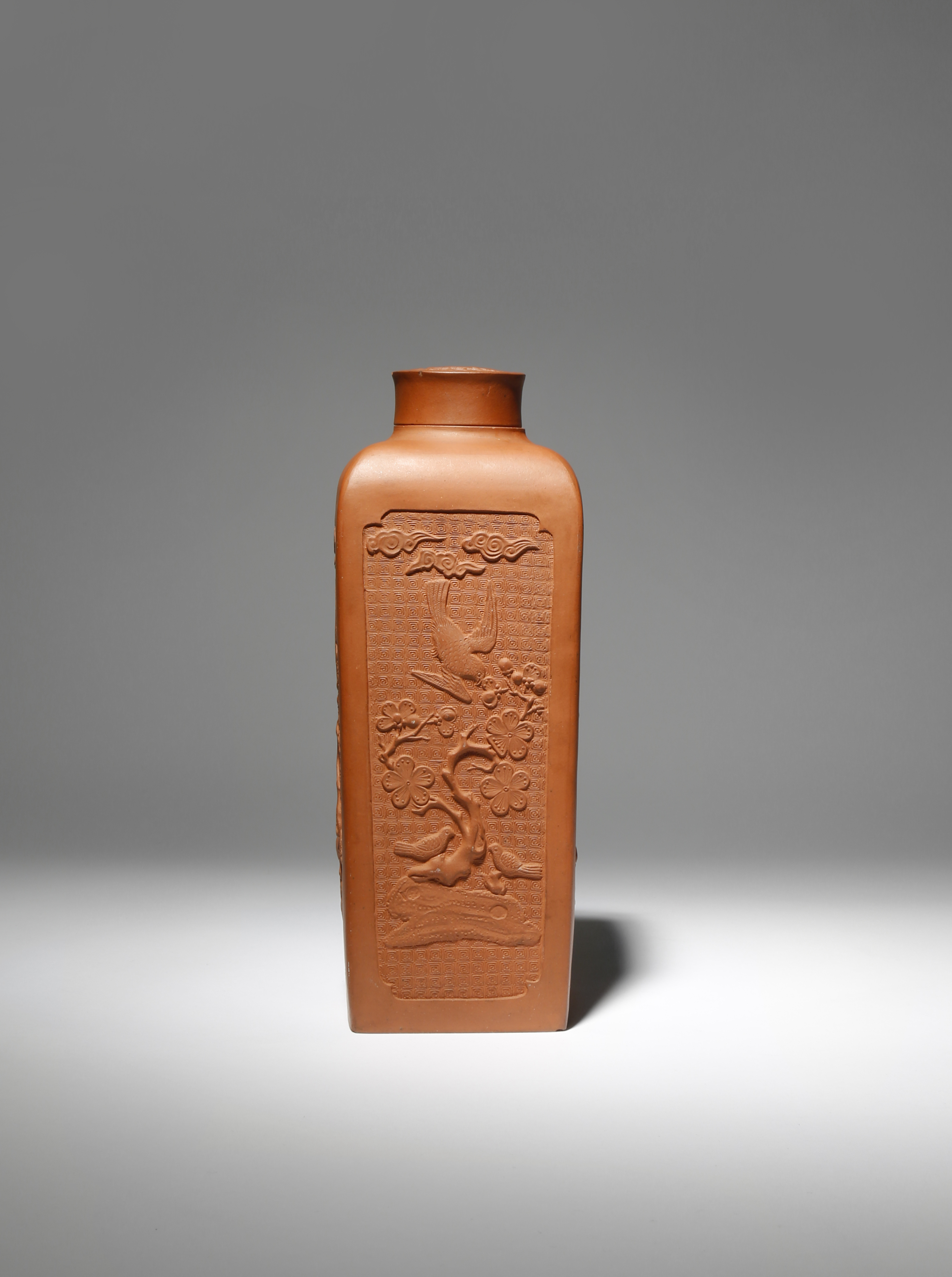Cf. Yixing Zisha Wares, 15th November 2011, lot 43 for a pair of similar canisters from the Arthur J Harris Collection sold in these rooms; see also C J A Jörg, Chinese Ceramics in the Collection of the Rijksmuseum, Amsterdam, The Ming and Qing Dynasties, pp.250-251, no.288 for another related example.