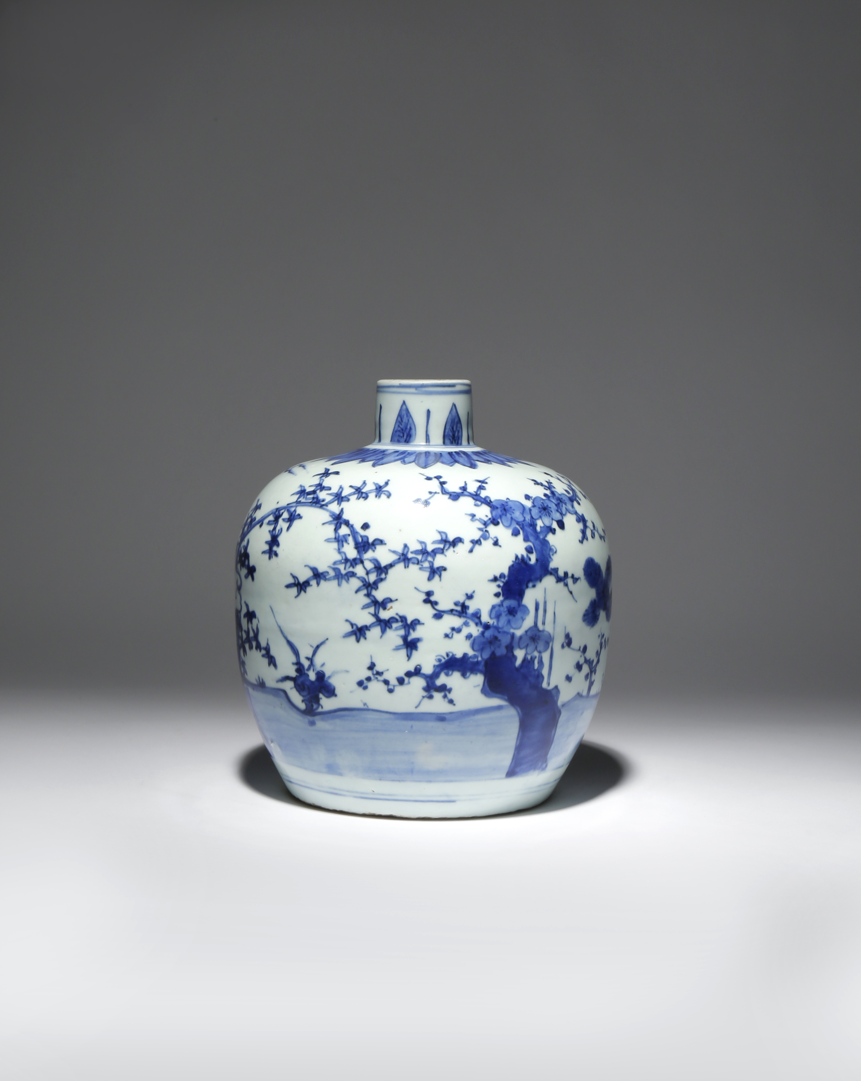 A CHINESE BLUE AND WHITE 'THREE FRIENDS OF WINTER' JAR WANLI 1573-1620 The ovoid body painted...