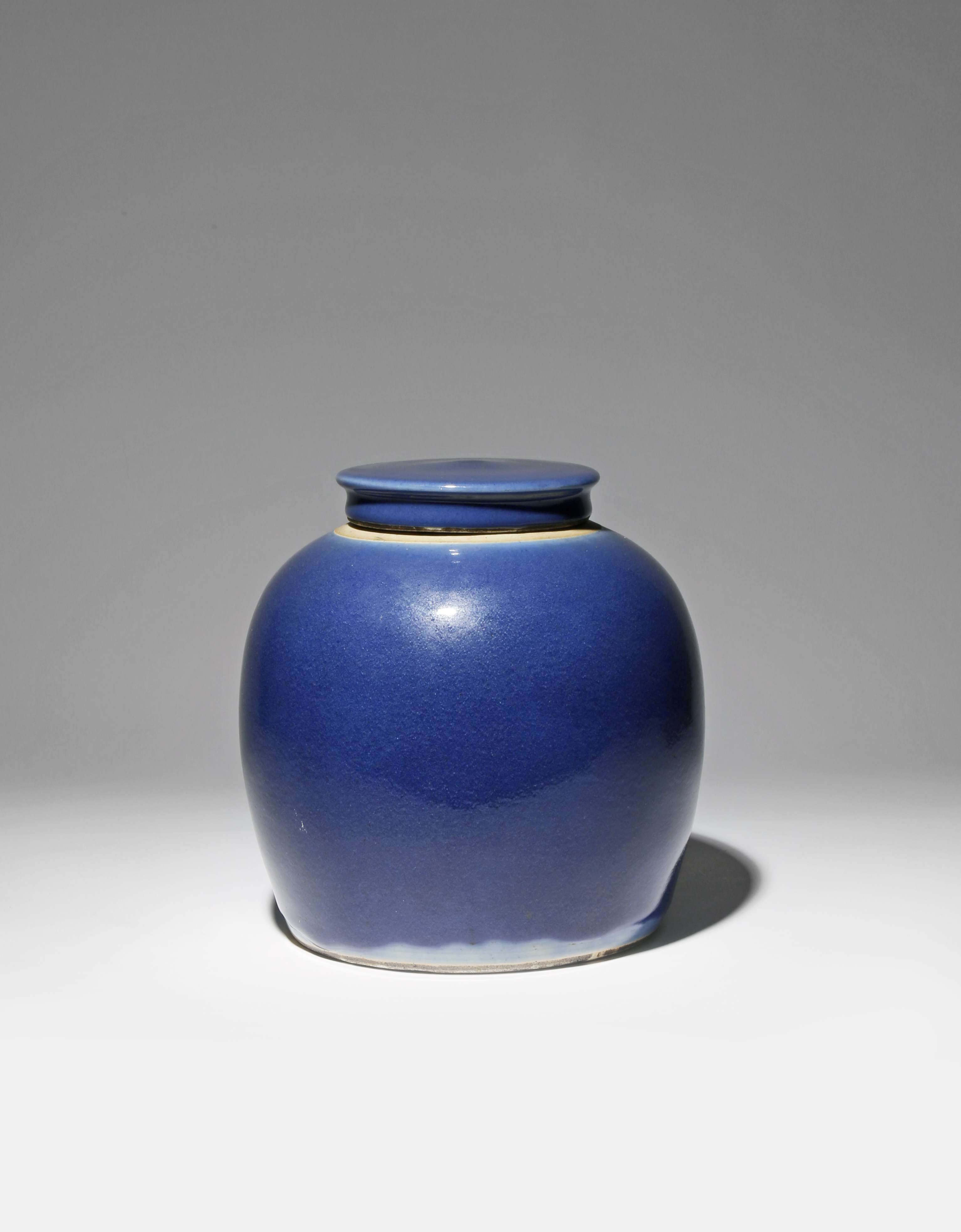A CHINESE BLUE GLAZED OVOID VASE AND COVER