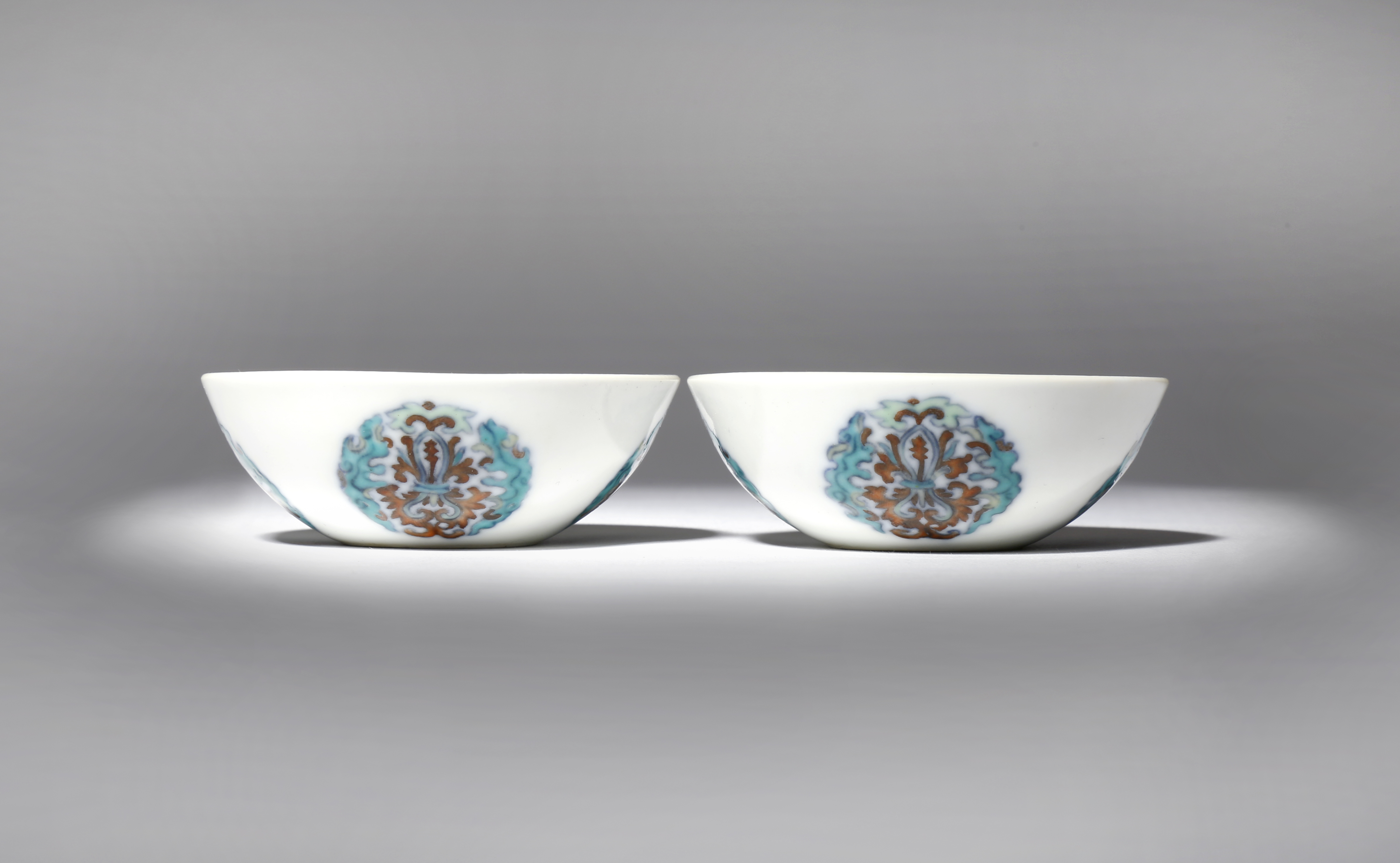 A PAIR OF SMALL CHINESE DOUCAI TEA BOWLS