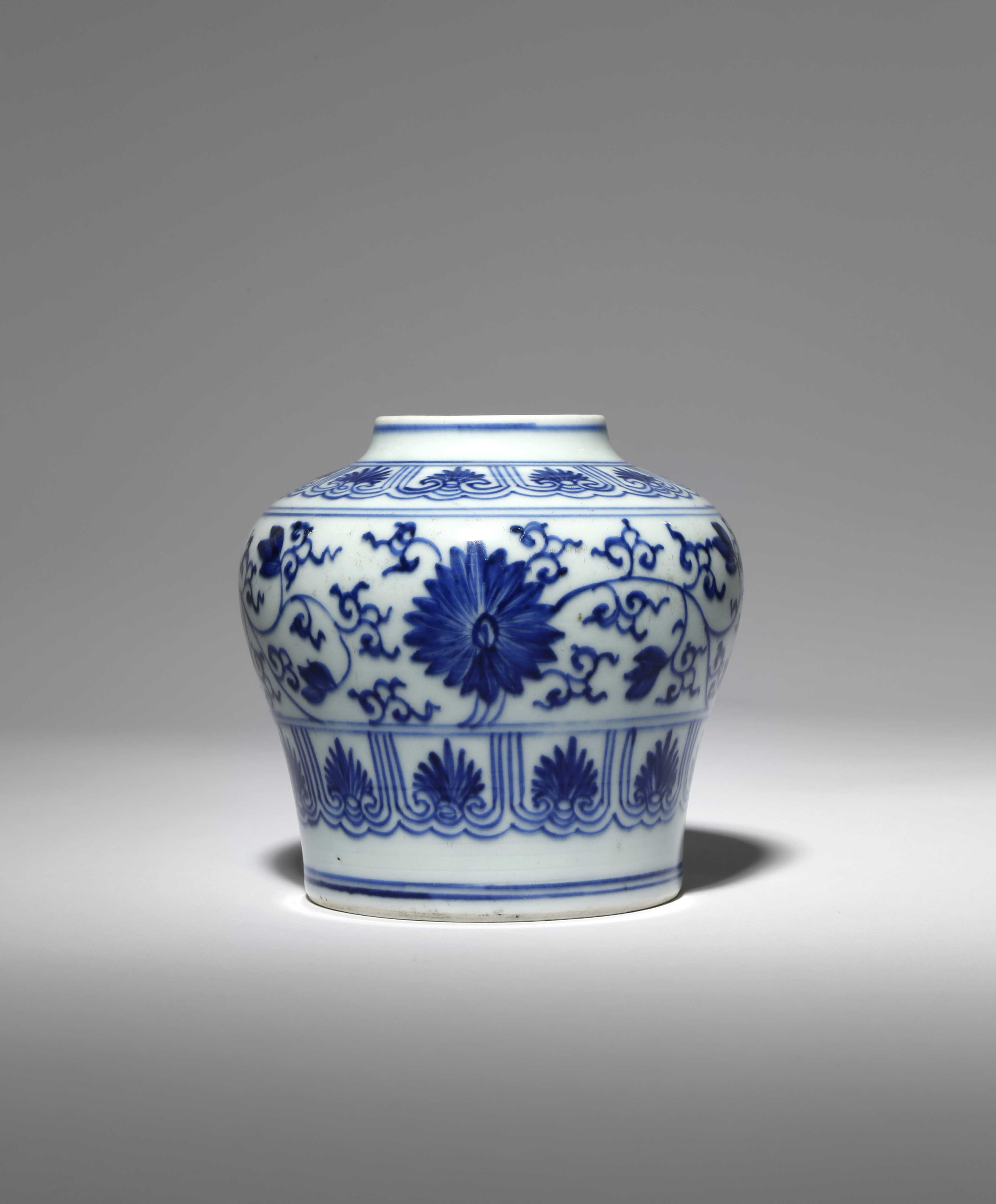 A SMALL CHINESE BLUE AND WHITE JAR QING DYNASTY OR LATER The exterior painted in underglaze blue...
