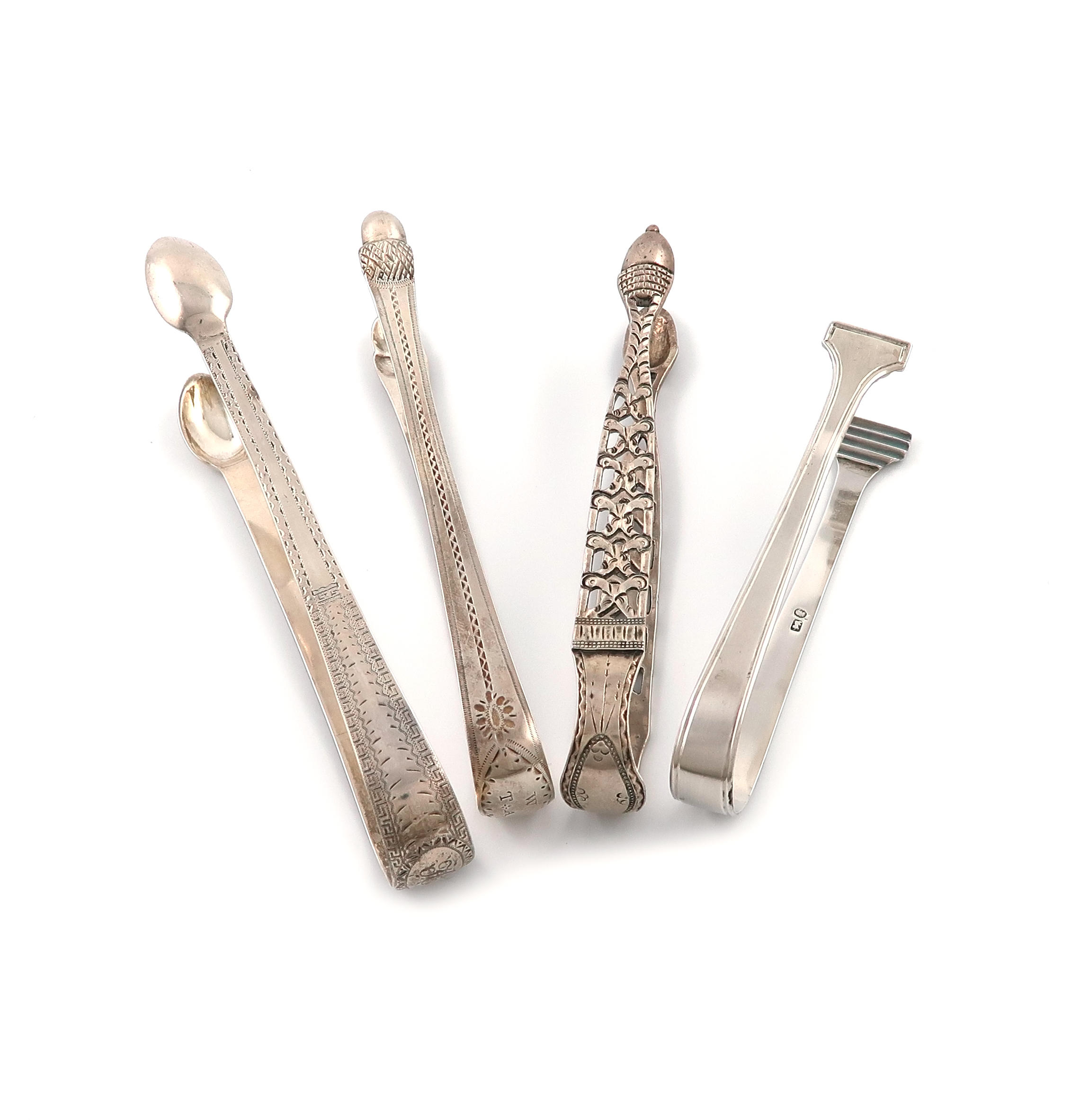 A mixed lot of four pairs of silver sugar tongs