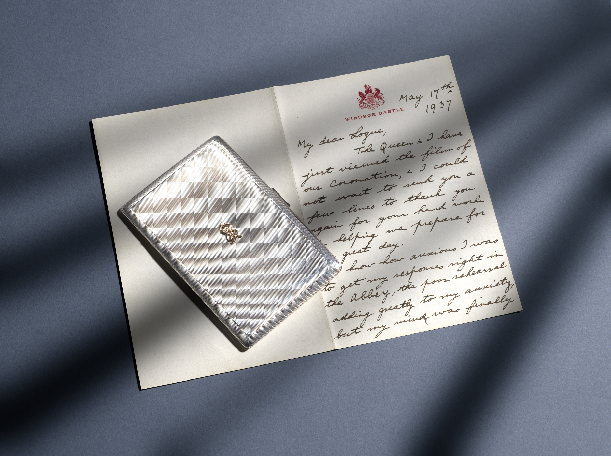 A Royal presentation silver cigarette case and accompanying letter from George VI to Lionel Logue