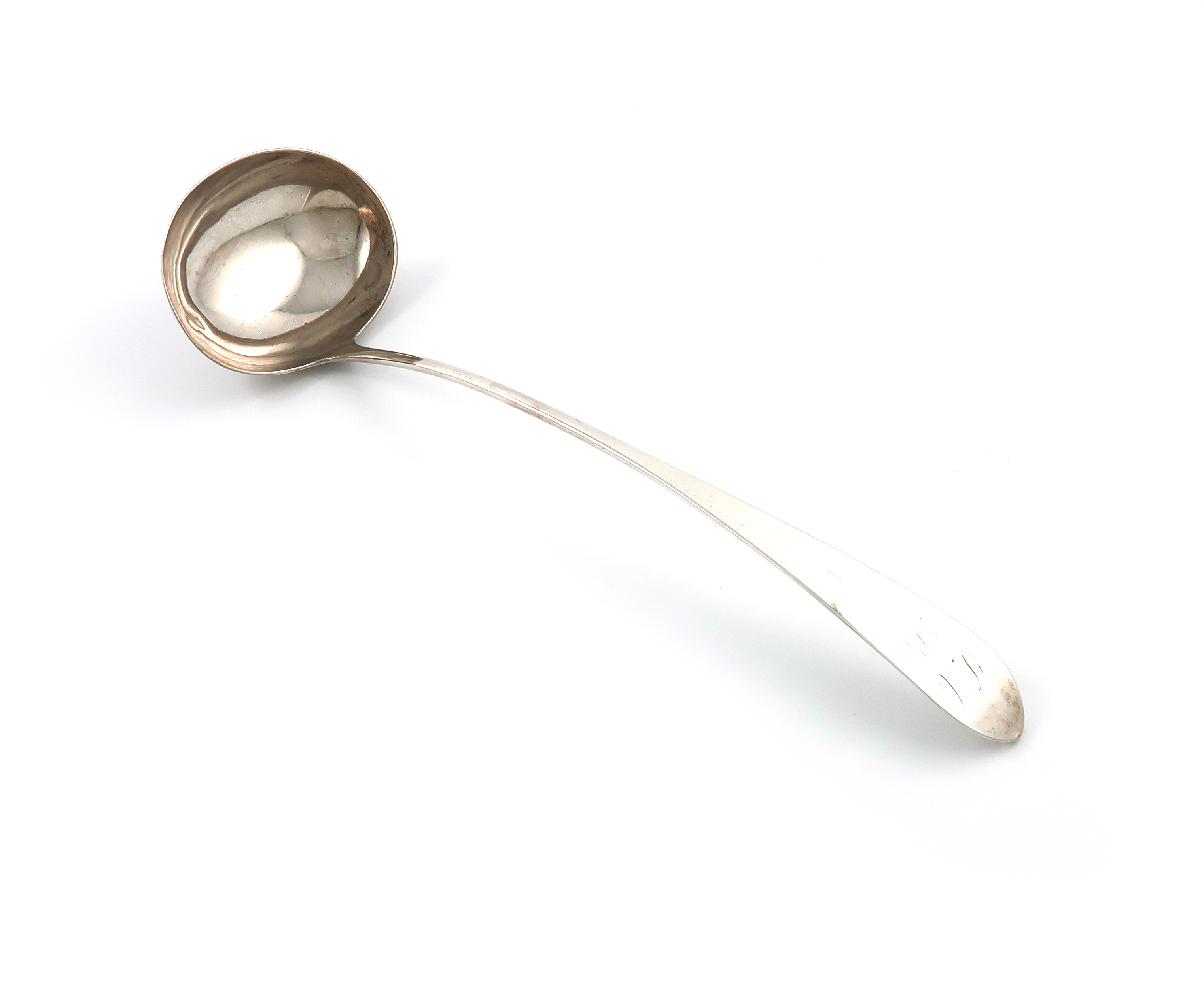 A George III Scottish silver Celtic Point pattern soup ladle