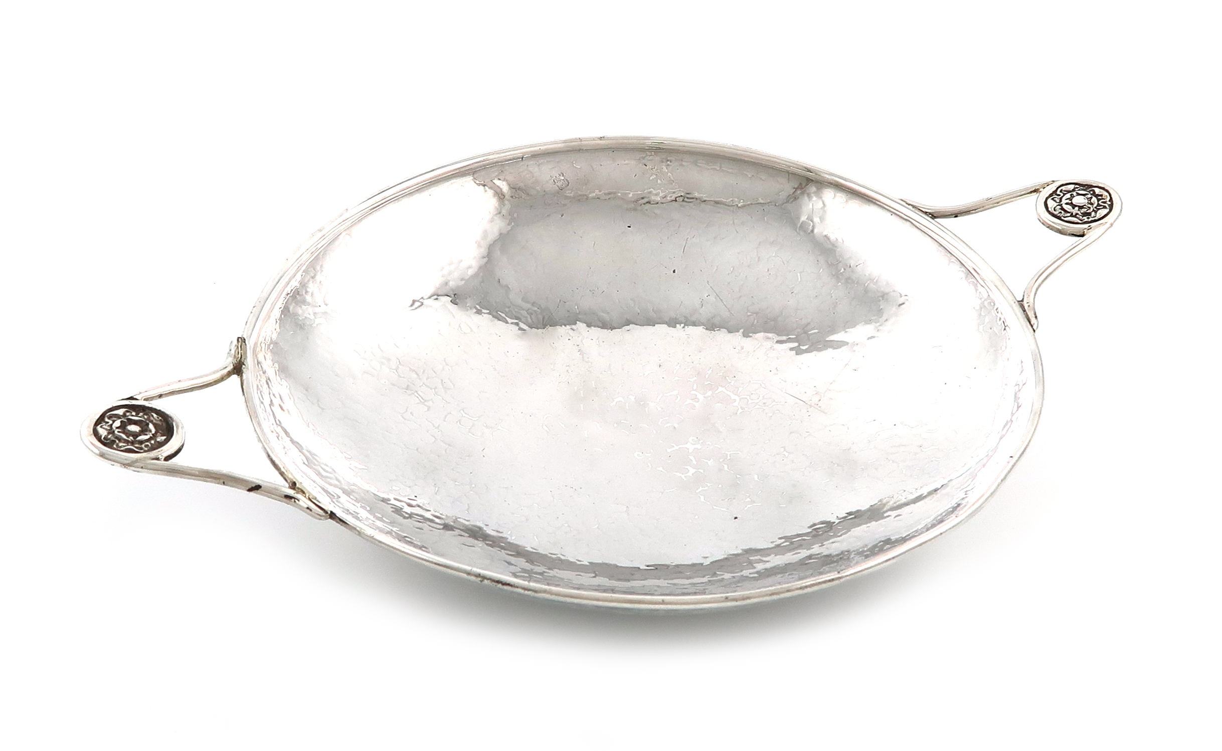 By A. E. Jones, an Arts and Crafts silver two-handled dish,
