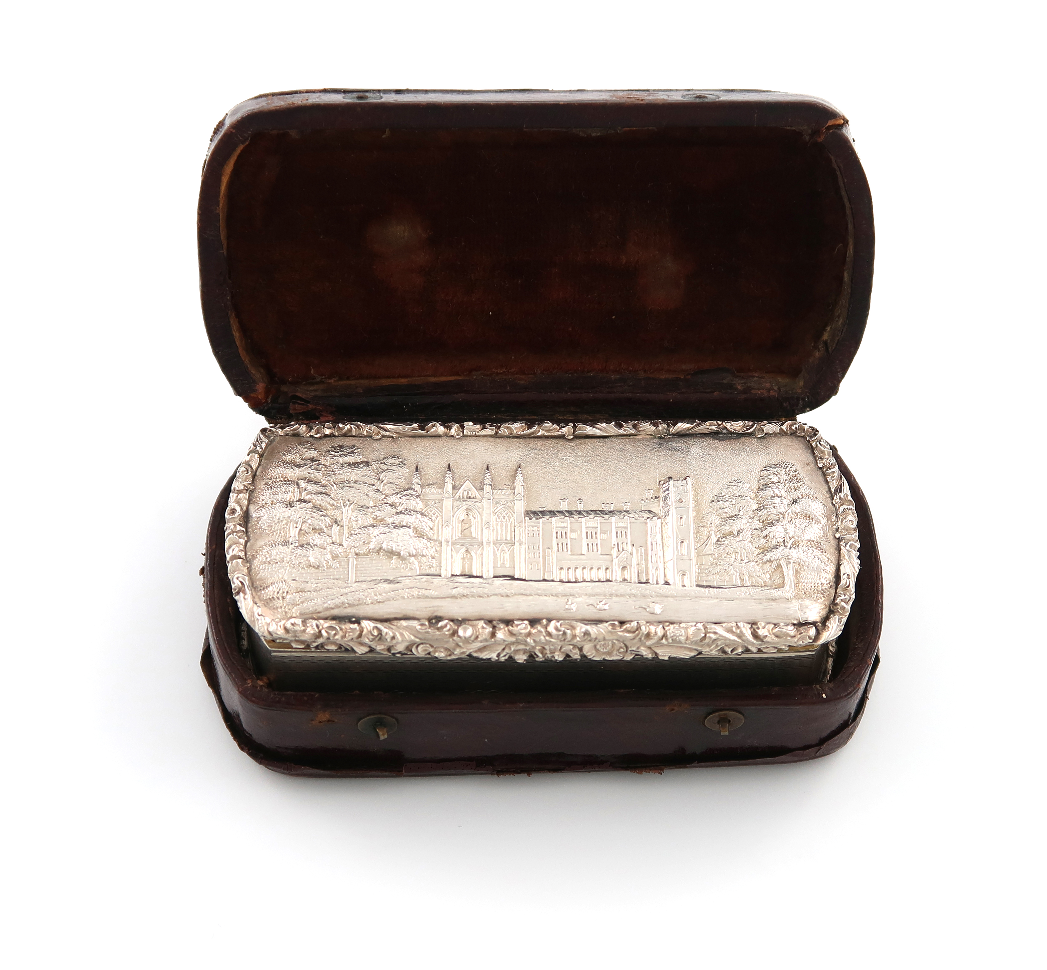 A William IV silver 'castle-top' snuff box, Newstead Abbey,