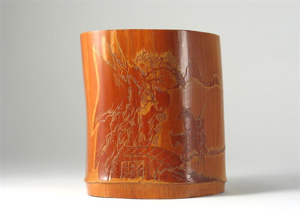 A Chinese bamboo brush pot