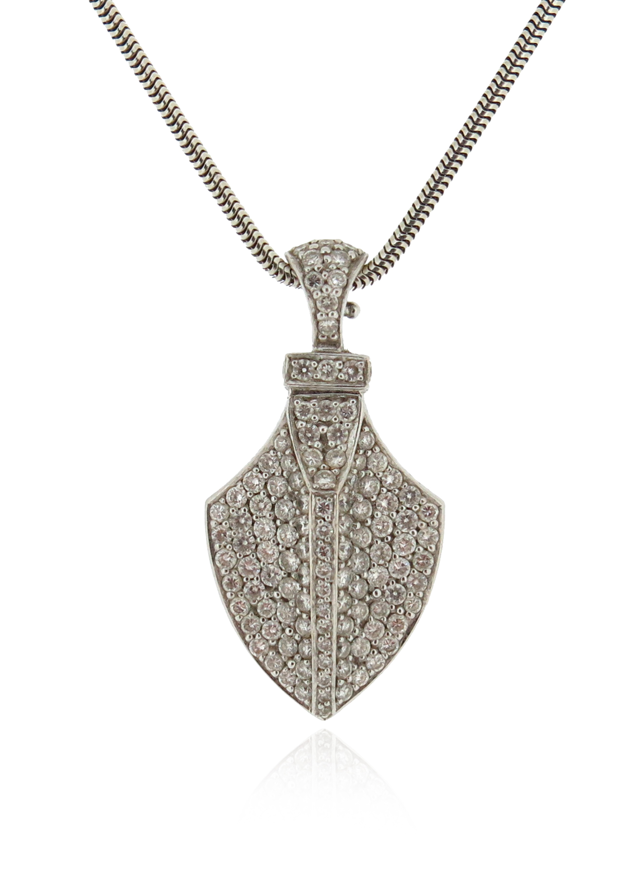 A diamond-set quiver pendant by Theo Fennell, in white gold, maker's mark and London hallmarks for 2007, on snake-link silver neck chain, pendant 3.8cm high, chain 44cm long