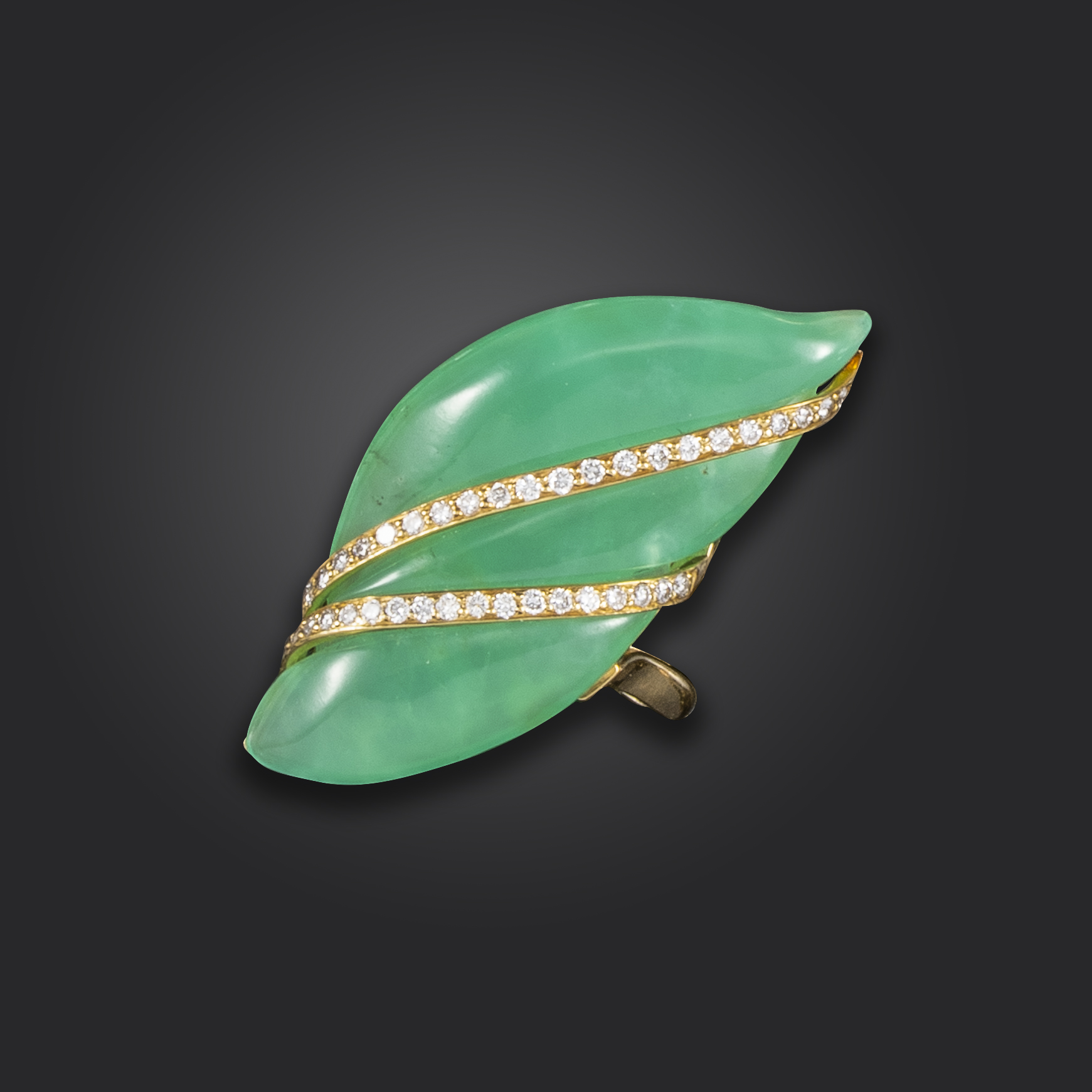 A chrysoprase and diamond-set ring by Geoffrey Rowlandson