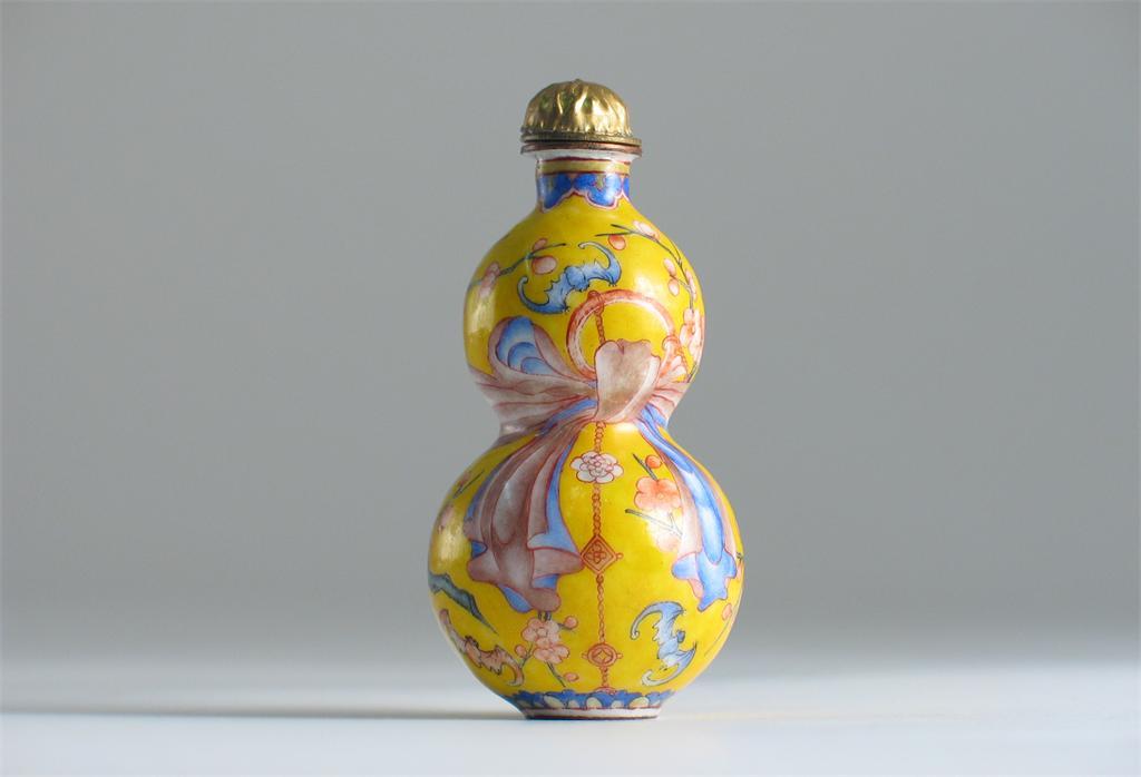 A Chinese enamel gourd shaped snuff bottle