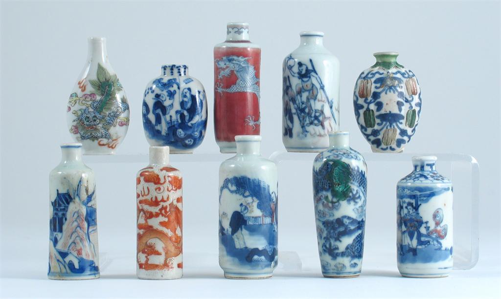 A collection of ten Chinese porcelain snuff bottles. (10)