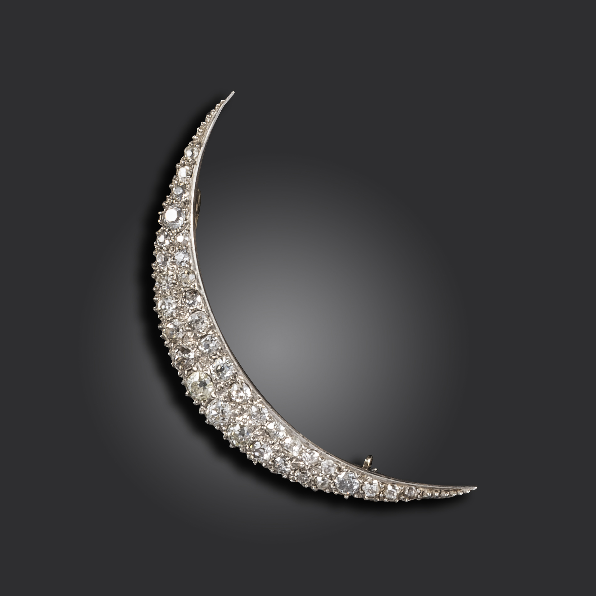 A late 19th century diamond-set open crescent brooch, set with two rows of graduated old circular-cut diamonds in platinum and yellow gold, 5.5cm wide